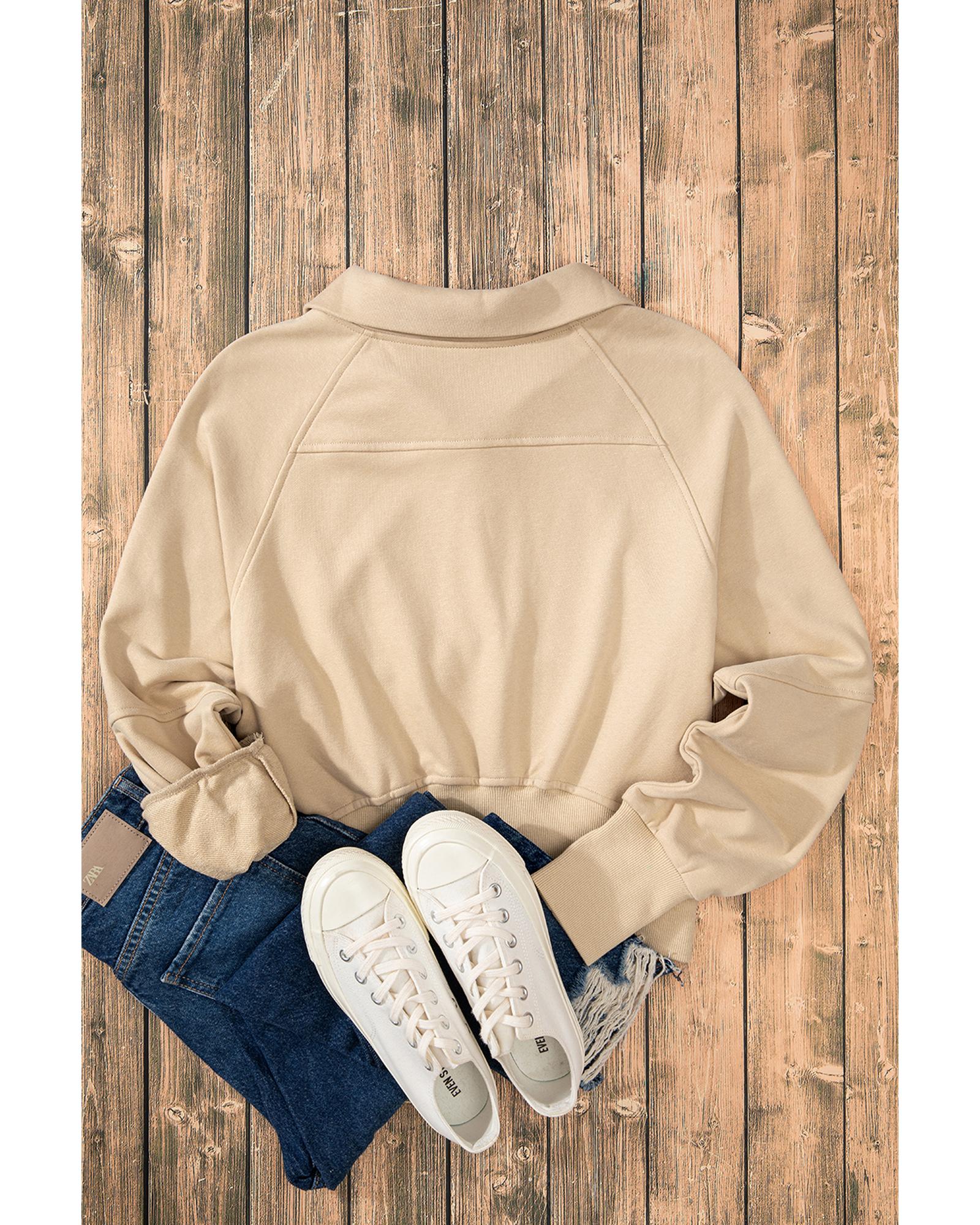Parchment Quarter Zip Stand Neck Kangaroo Pocket Sweatshirt – M