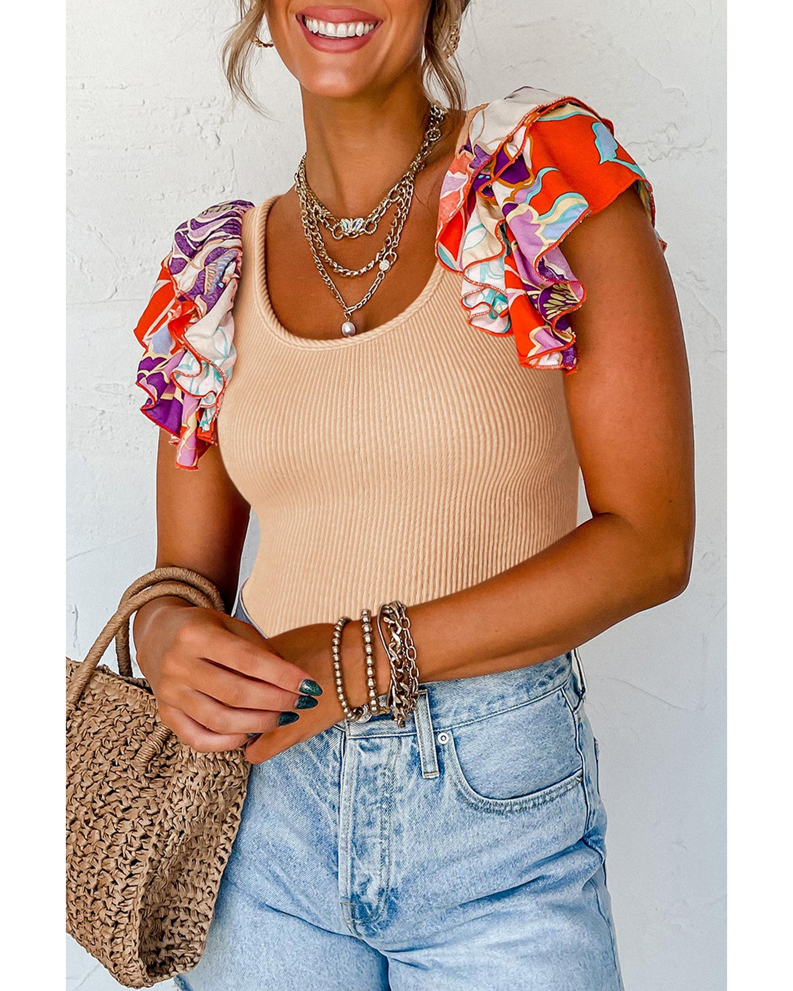 Parchment Ribbed Knit Tiered Ruffled Sleeve Bodysuit – XL