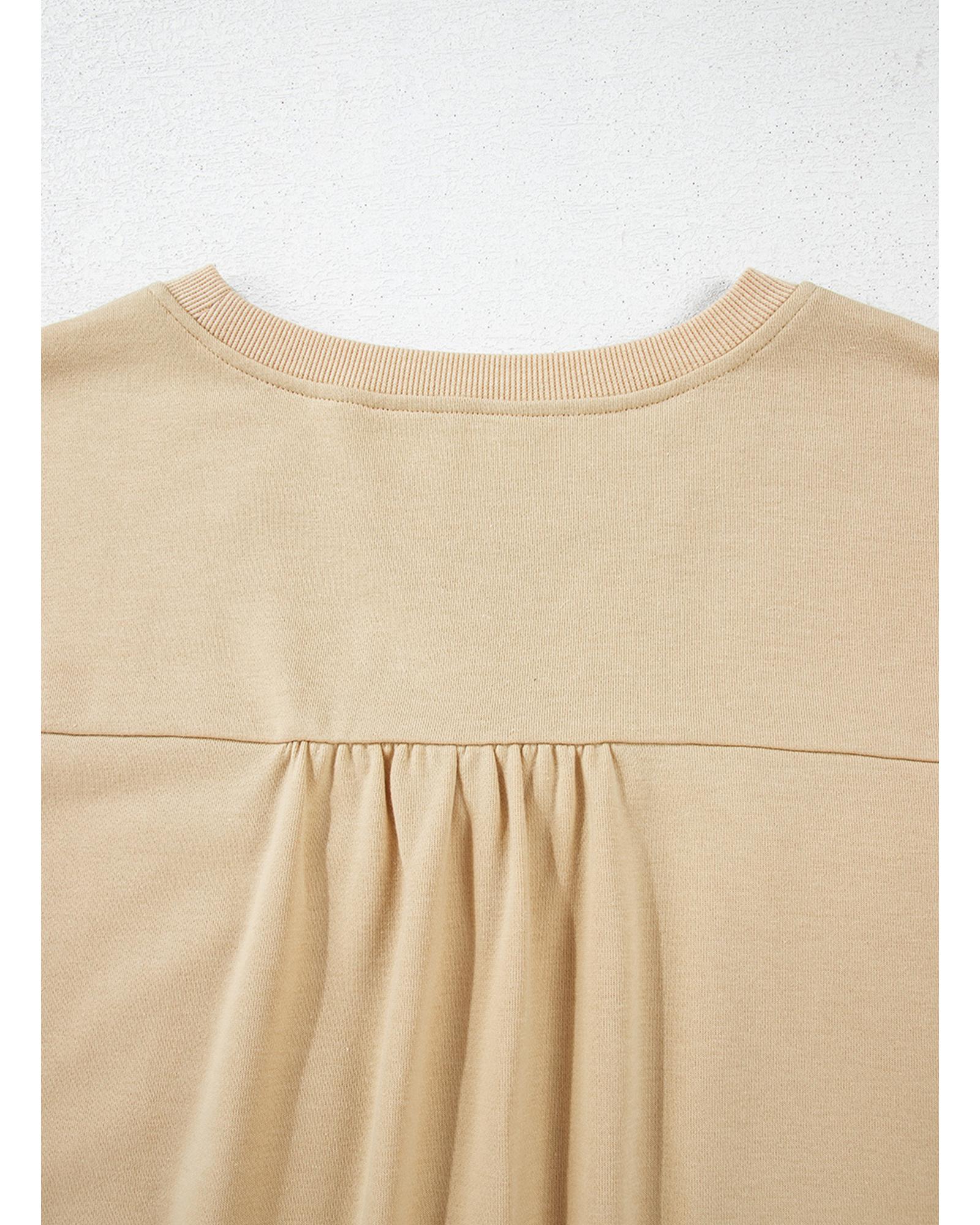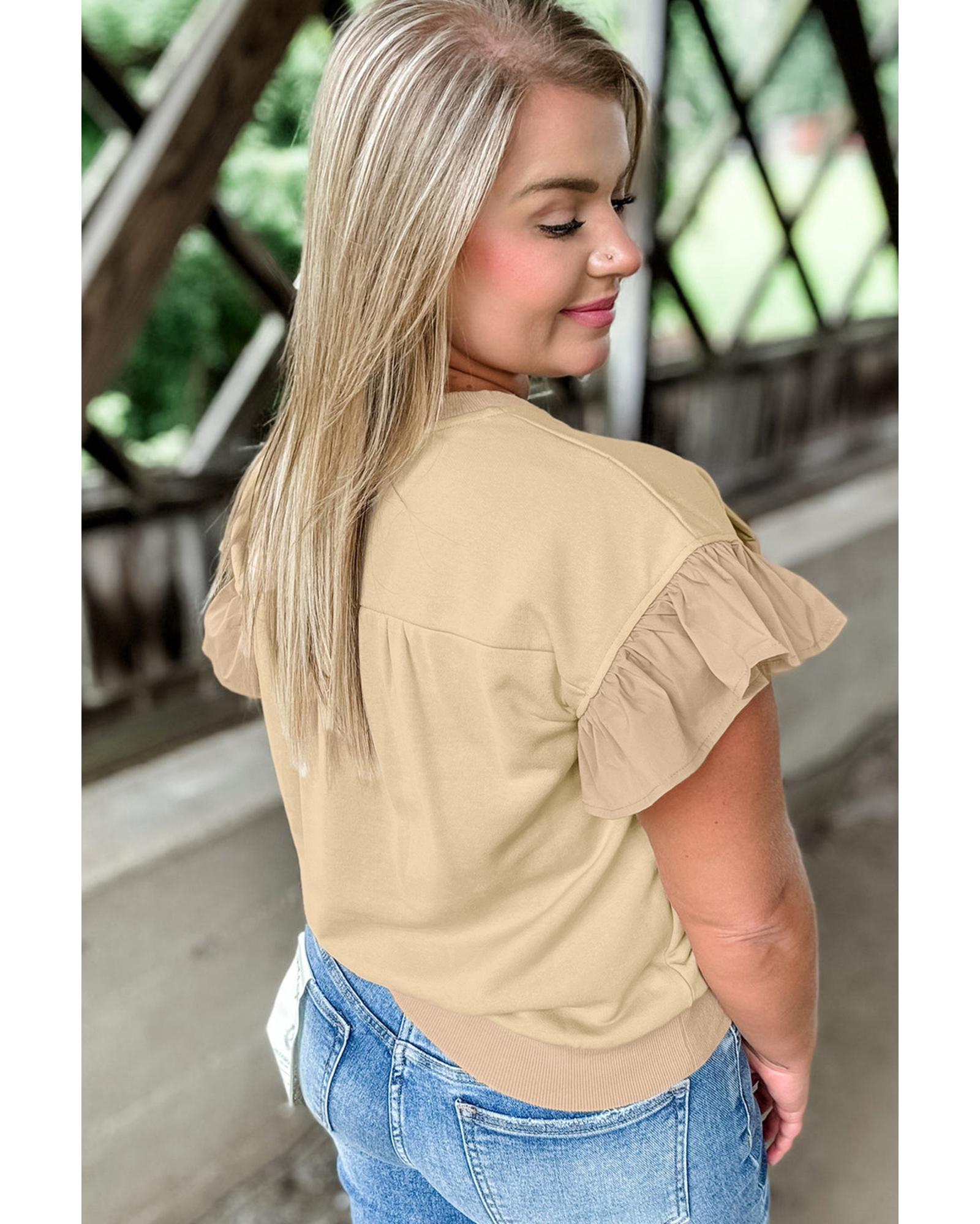 Parchment Ruffled Short Sleeve Bowknot Applique Crew Neck Plus Size Top – 2X