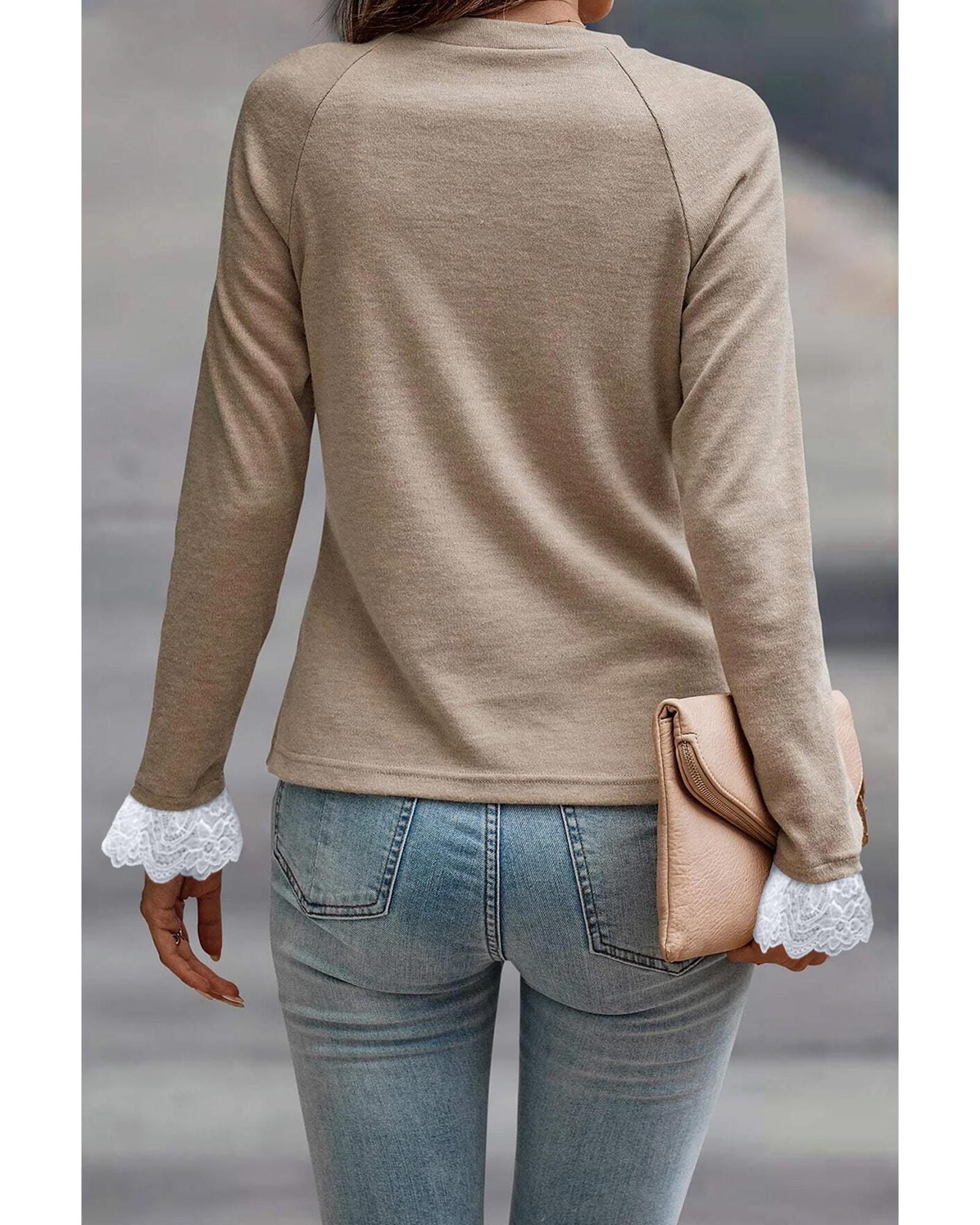 Parchment Seam Detail Lace Contrast Cuffs Raglan Sleeve Top – XL