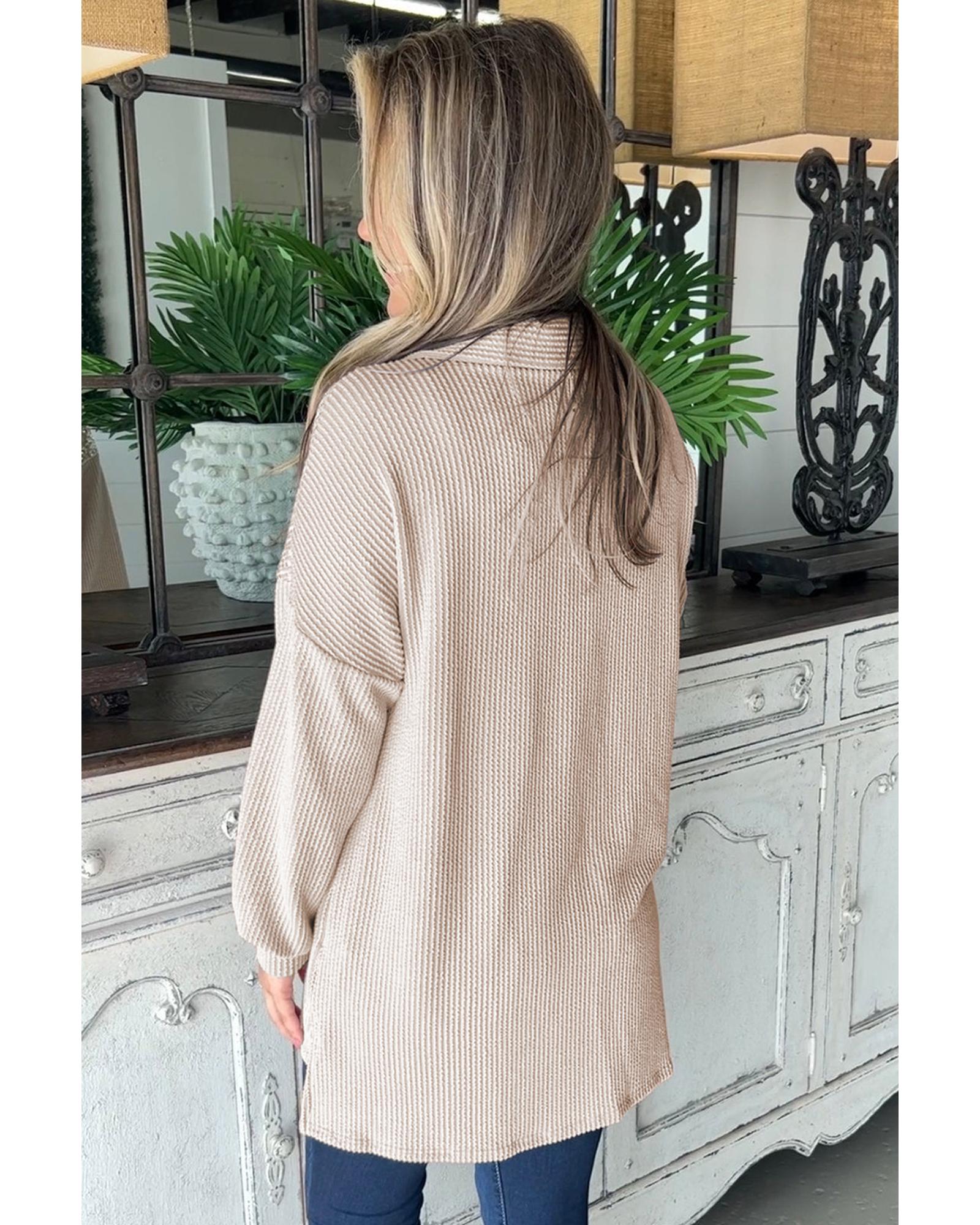 Oatmeal Textured Flap Pockets Buttoned Plus Size Shacket - 3X