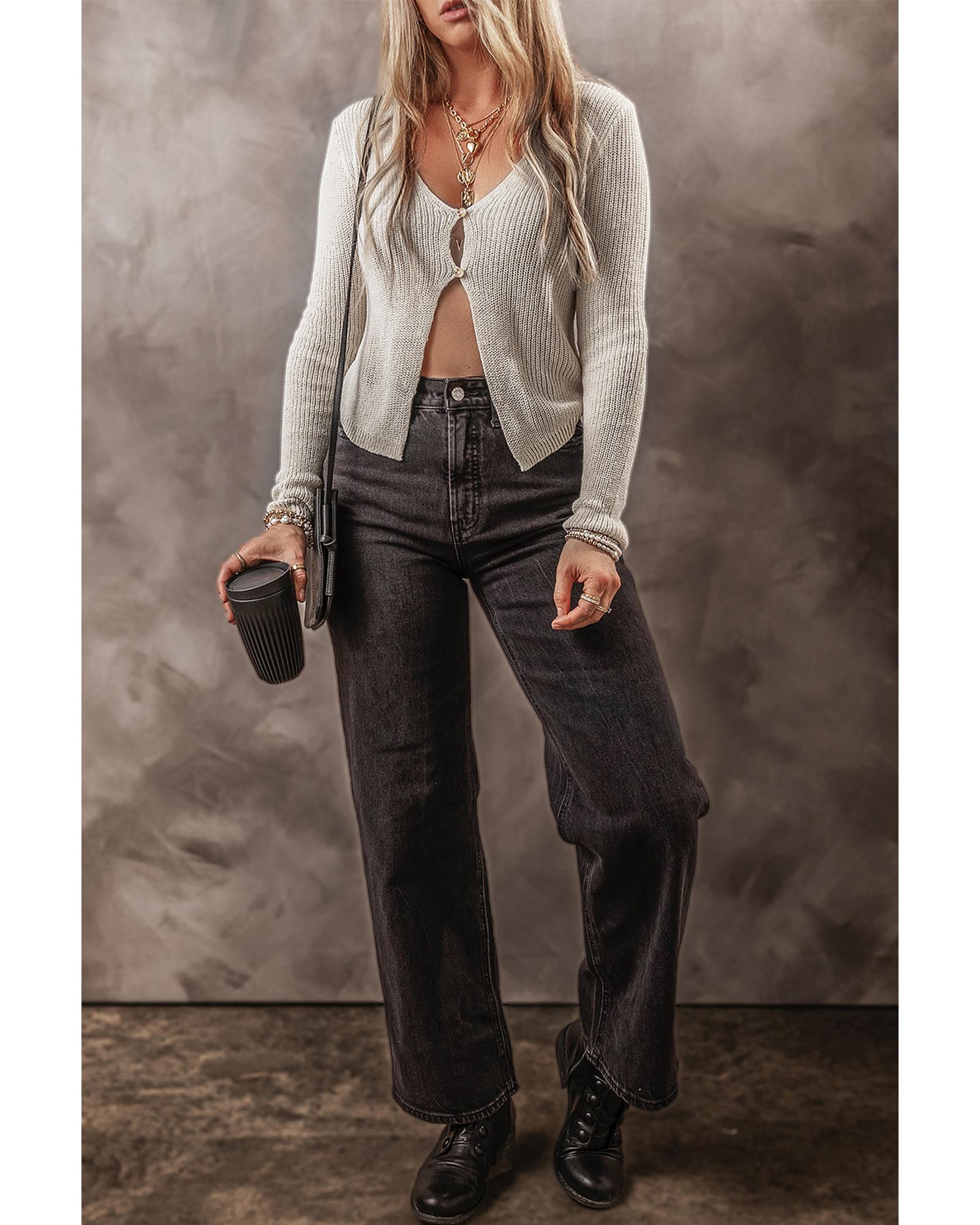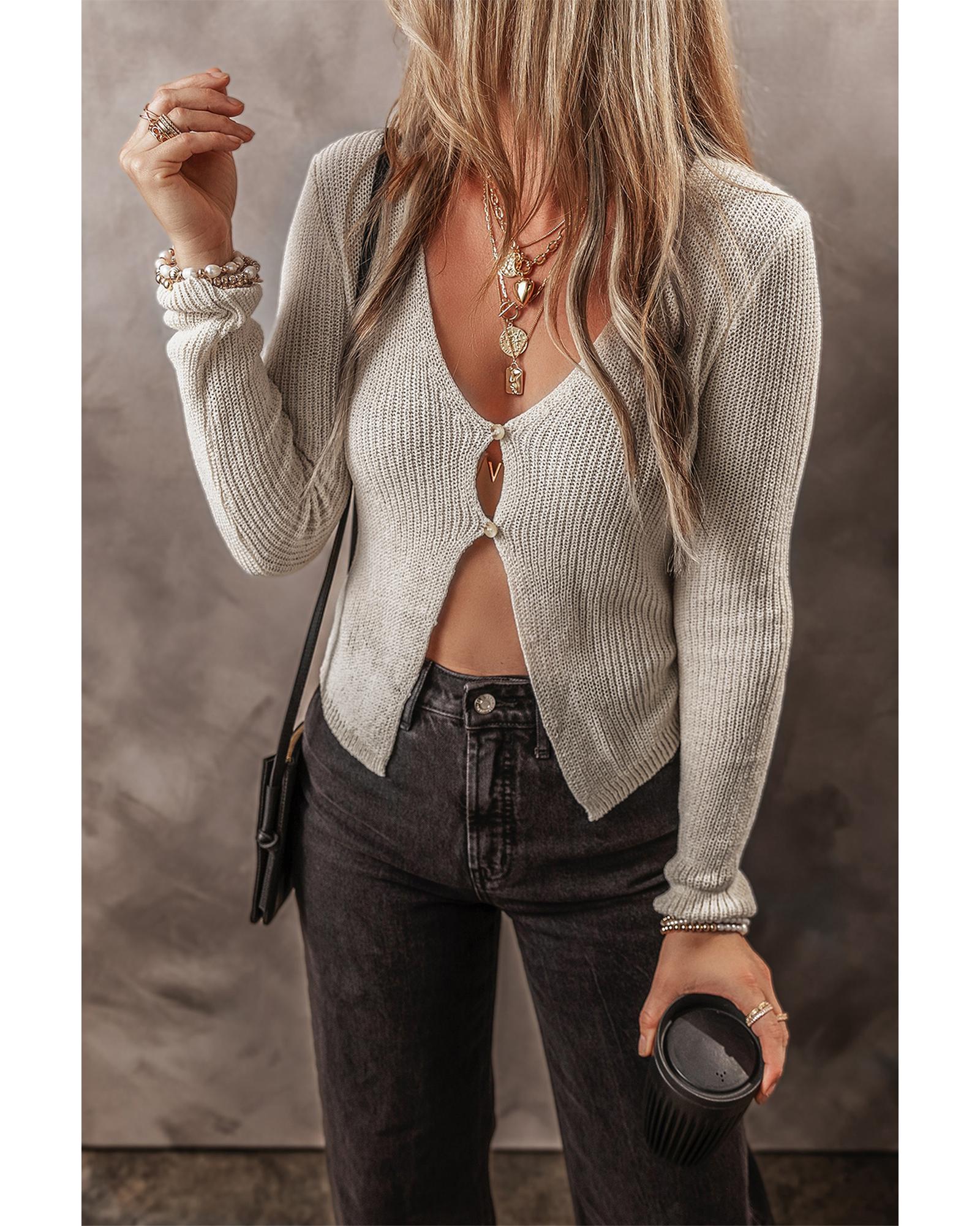 White Drawstring Hooded Button Up Drop Shoulder Sweater Cardigan - S