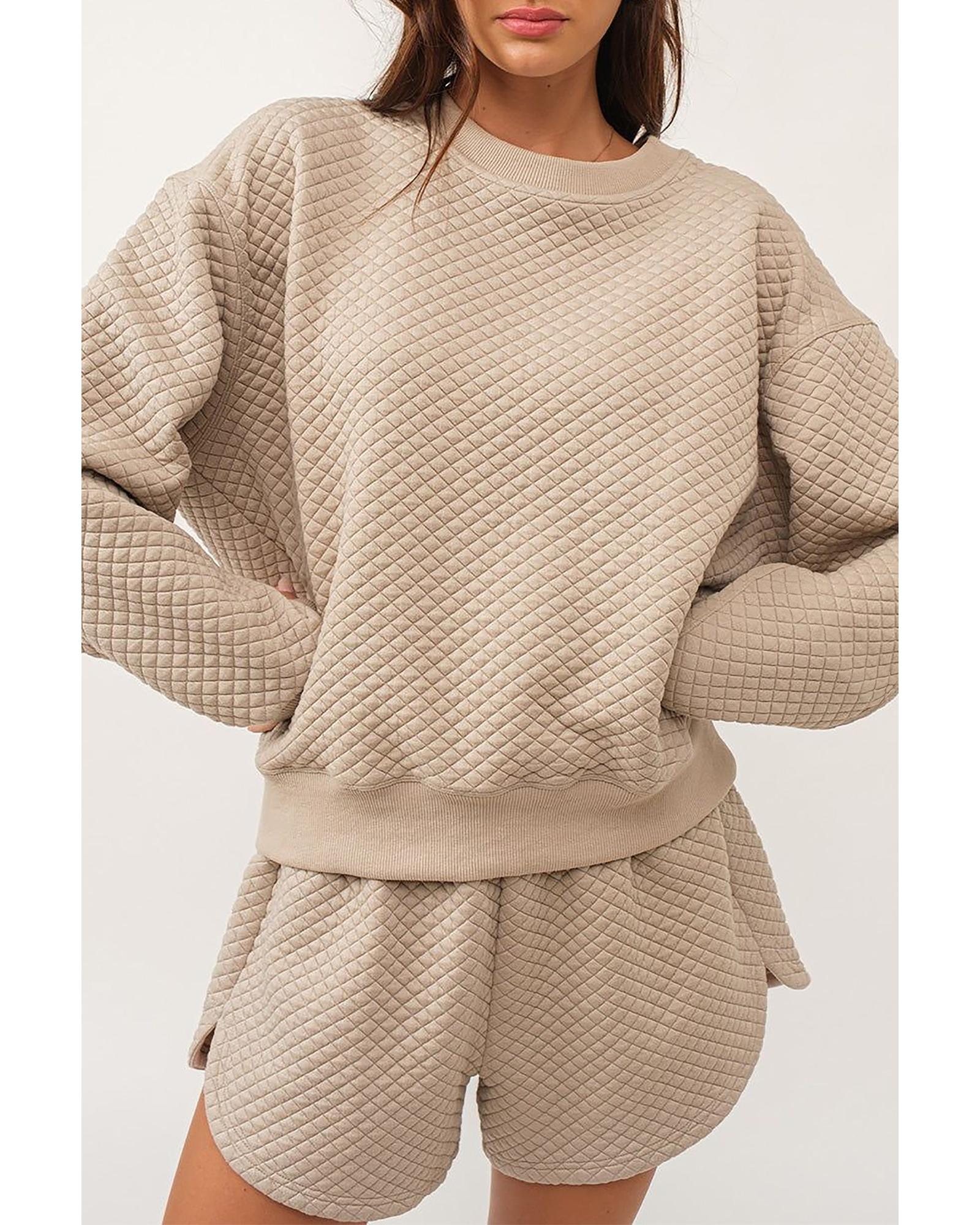 Parchment Solid Color Quilted Long Sleeve Top and Shorts Set – L