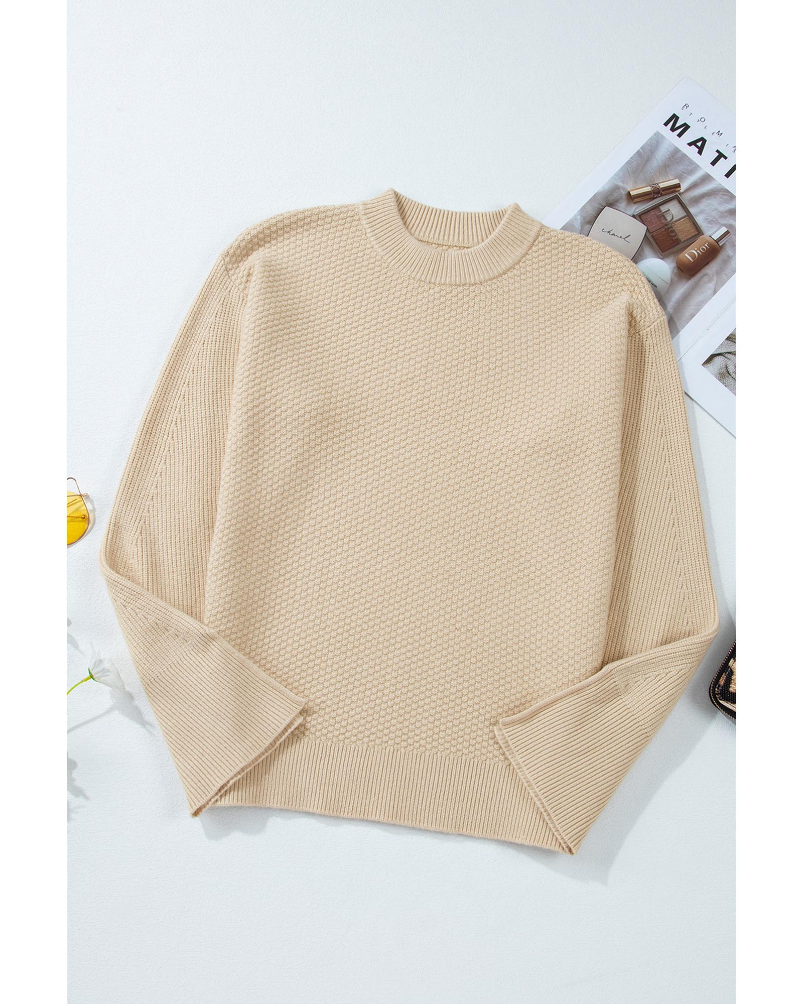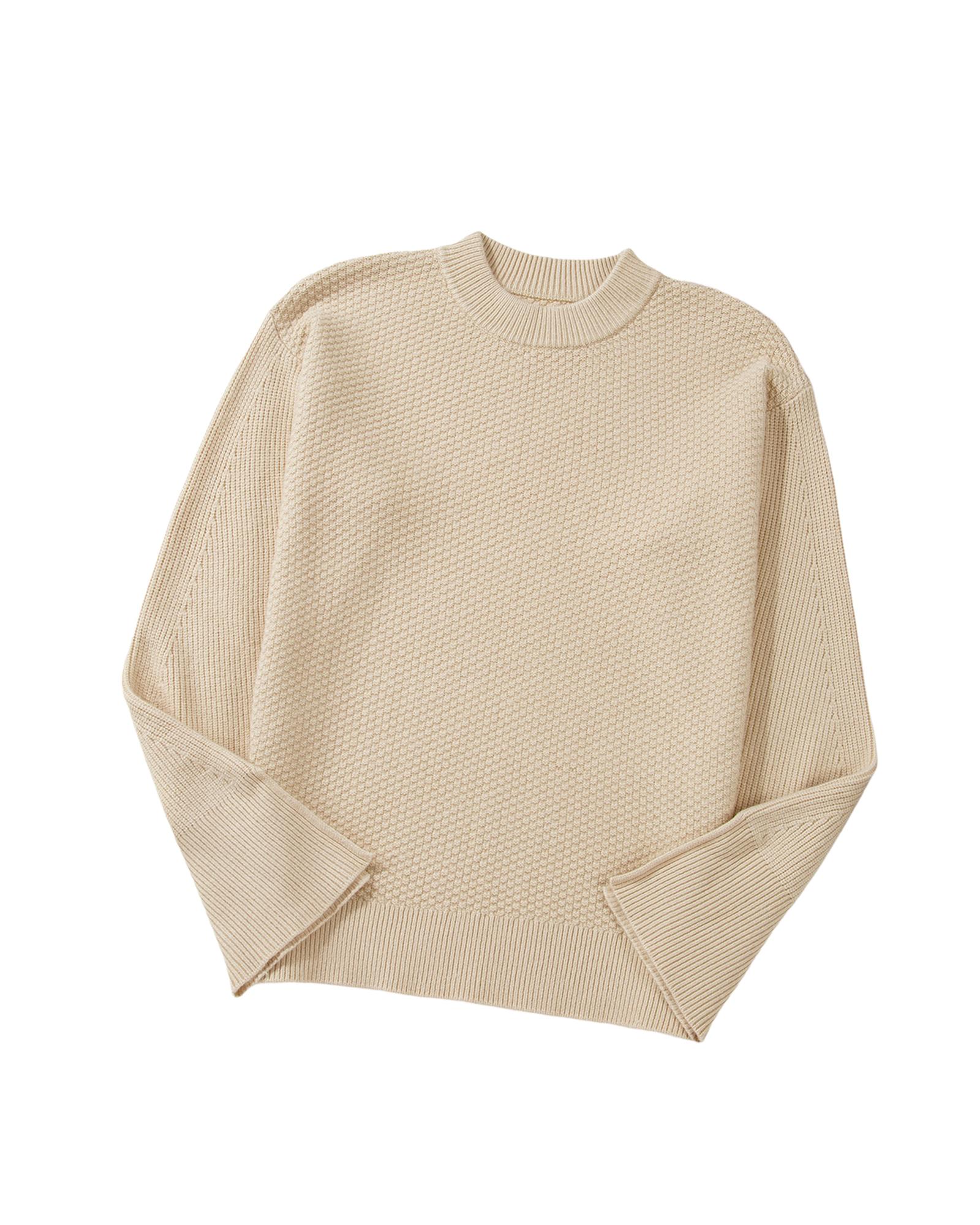 - Parchment Solid Textured Knit Split Cuff Drop Shoulder Loose Sweater