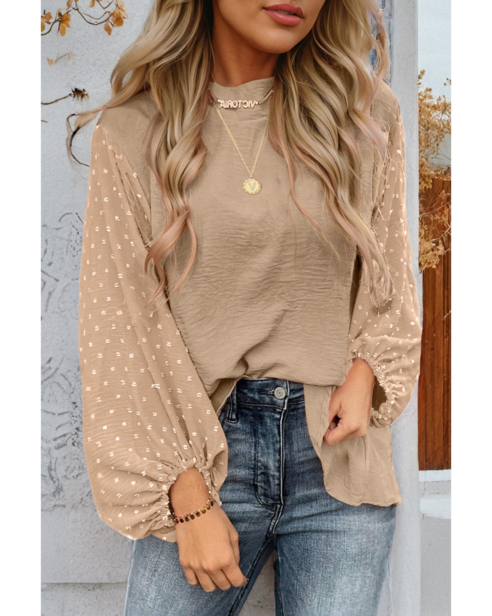 Parchment Swiss Dot Balloon Sleeve Loose Blouse – M