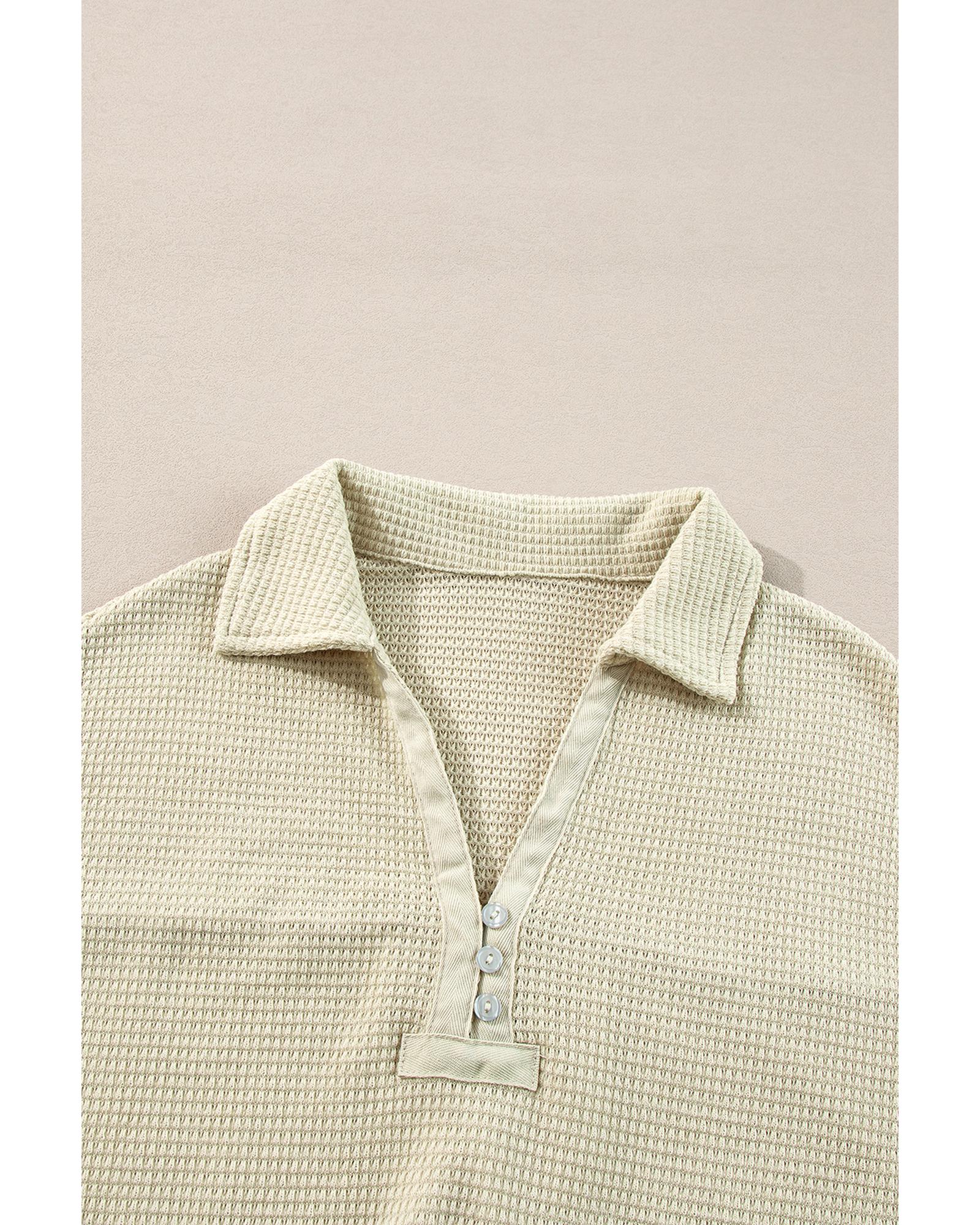 Parchment Textured Buttoned Long Sleeve Top 2 Piece Shorts Set – M