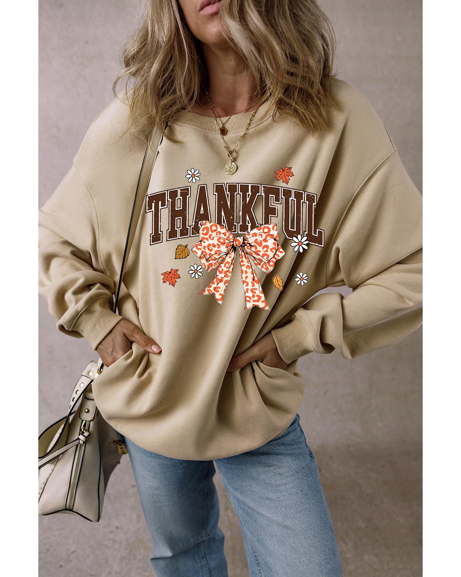 Parchment THANKFUL Leopard Bow Fall Vibe Graphic Sweatshirt – S