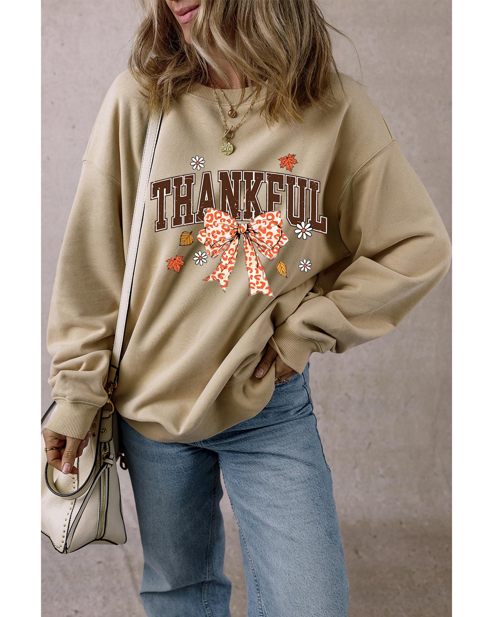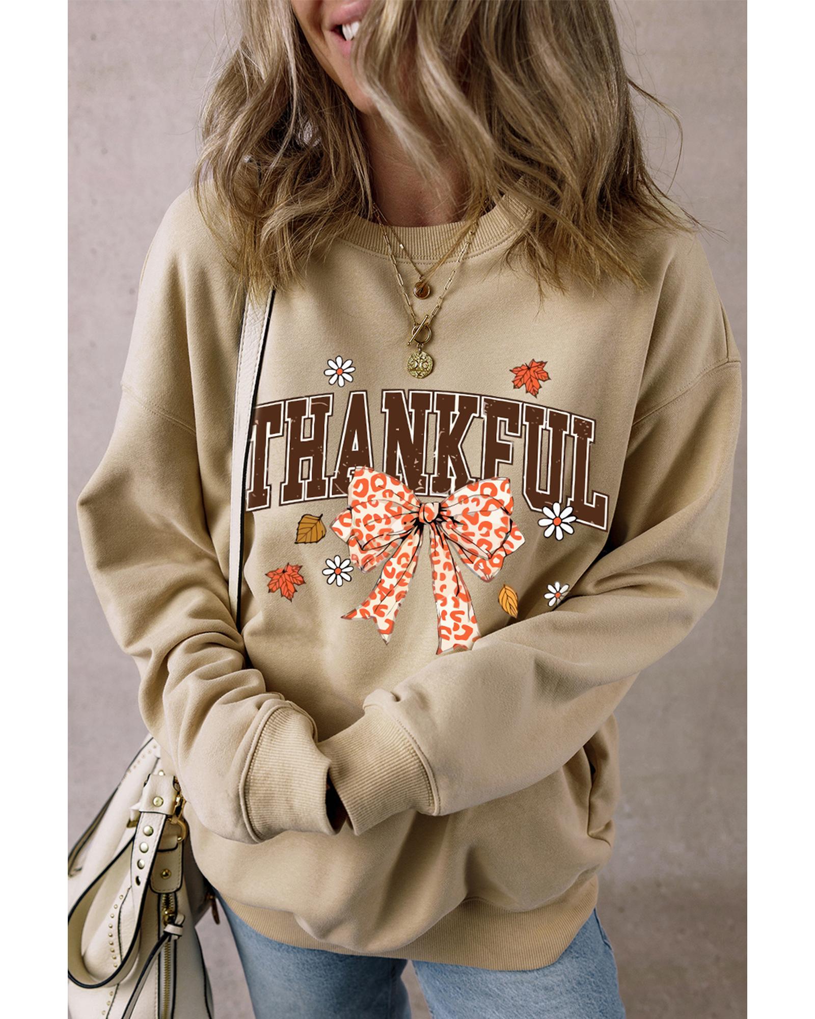 Parchment THANKFUL Leopard Bow Fall Vibe Graphic Sweatshirt – XL