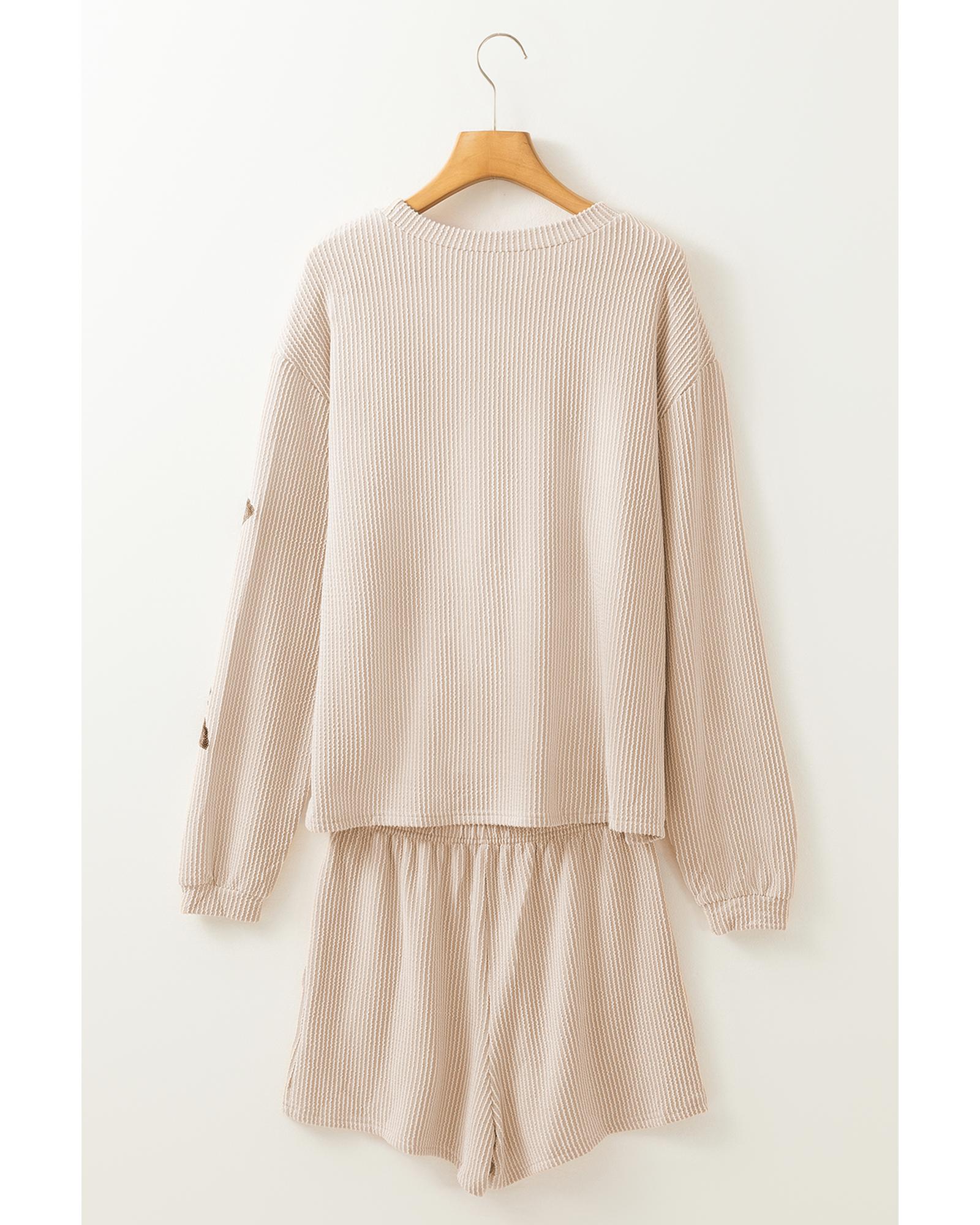 Apricot Solid Seamed Zipper Jacket and Drawstring Waist Pants Set - XL