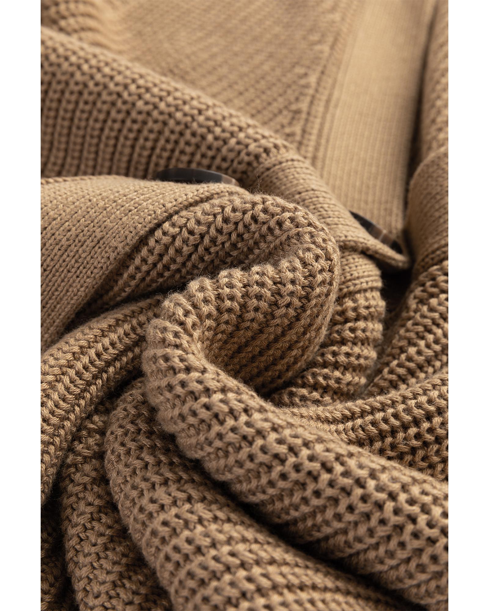 Beige Colorblock Flower Print Cable Knit Loose Sweater - XL