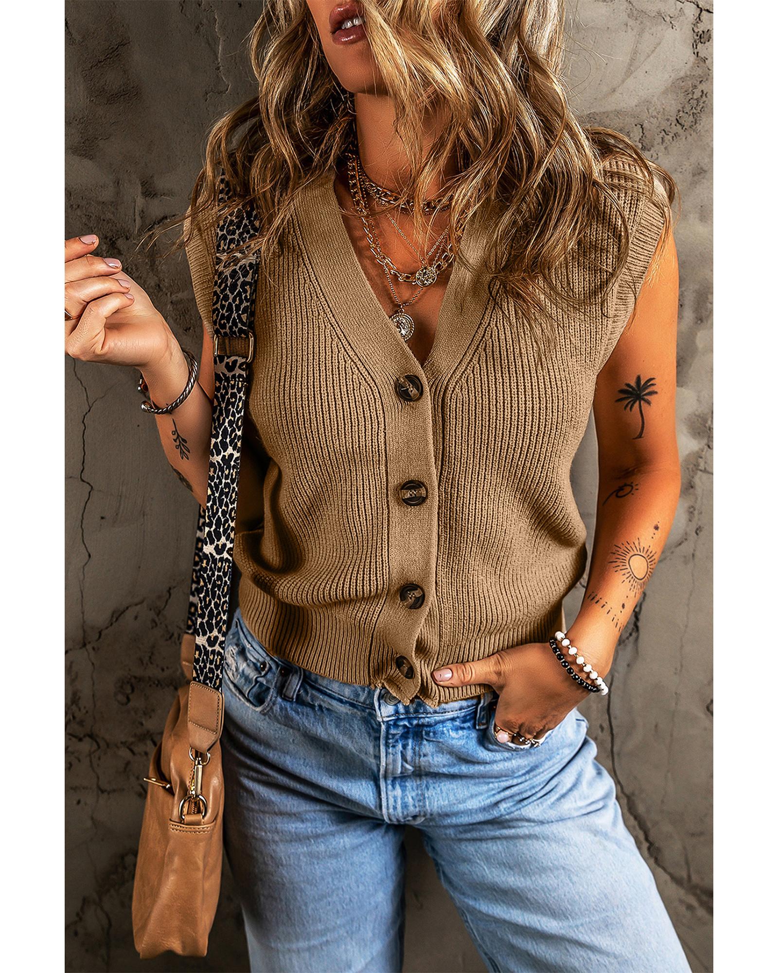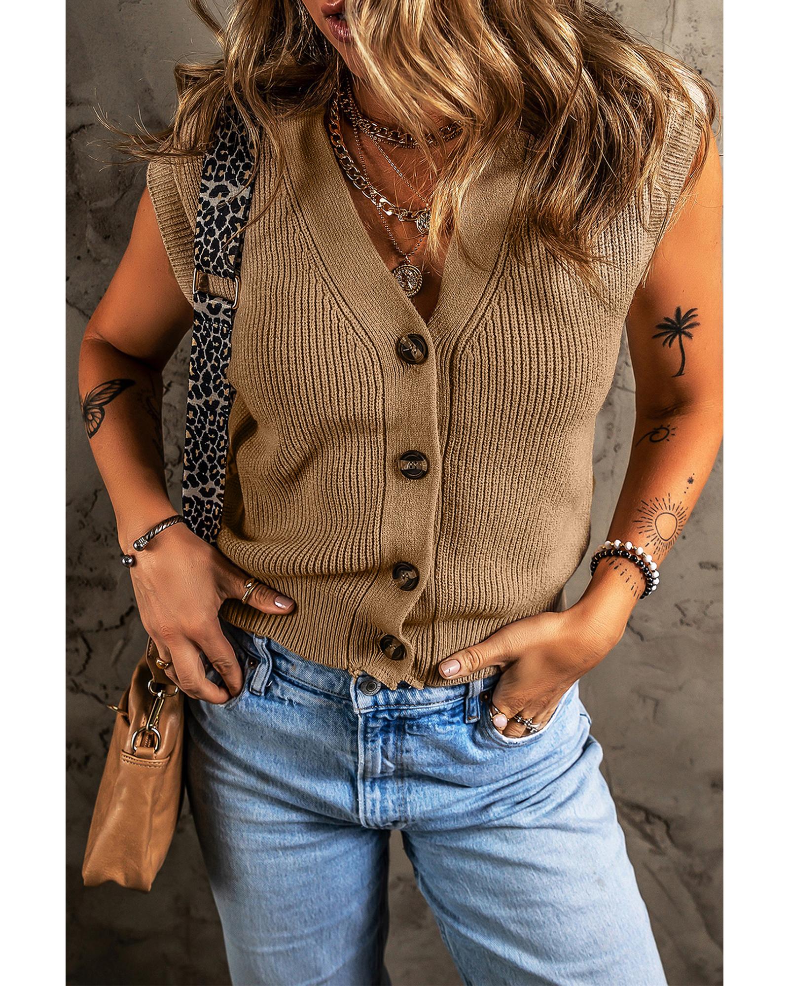 Parchment V Neck Buttoned Front Sweater Vest – L