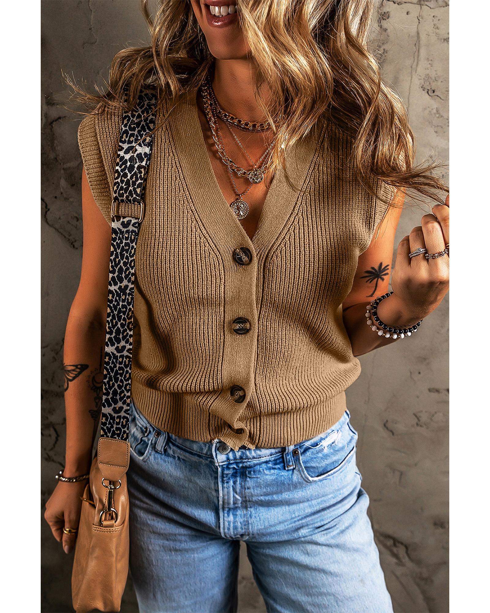 Parchment V Neck Buttoned Front Sweater Vest – S