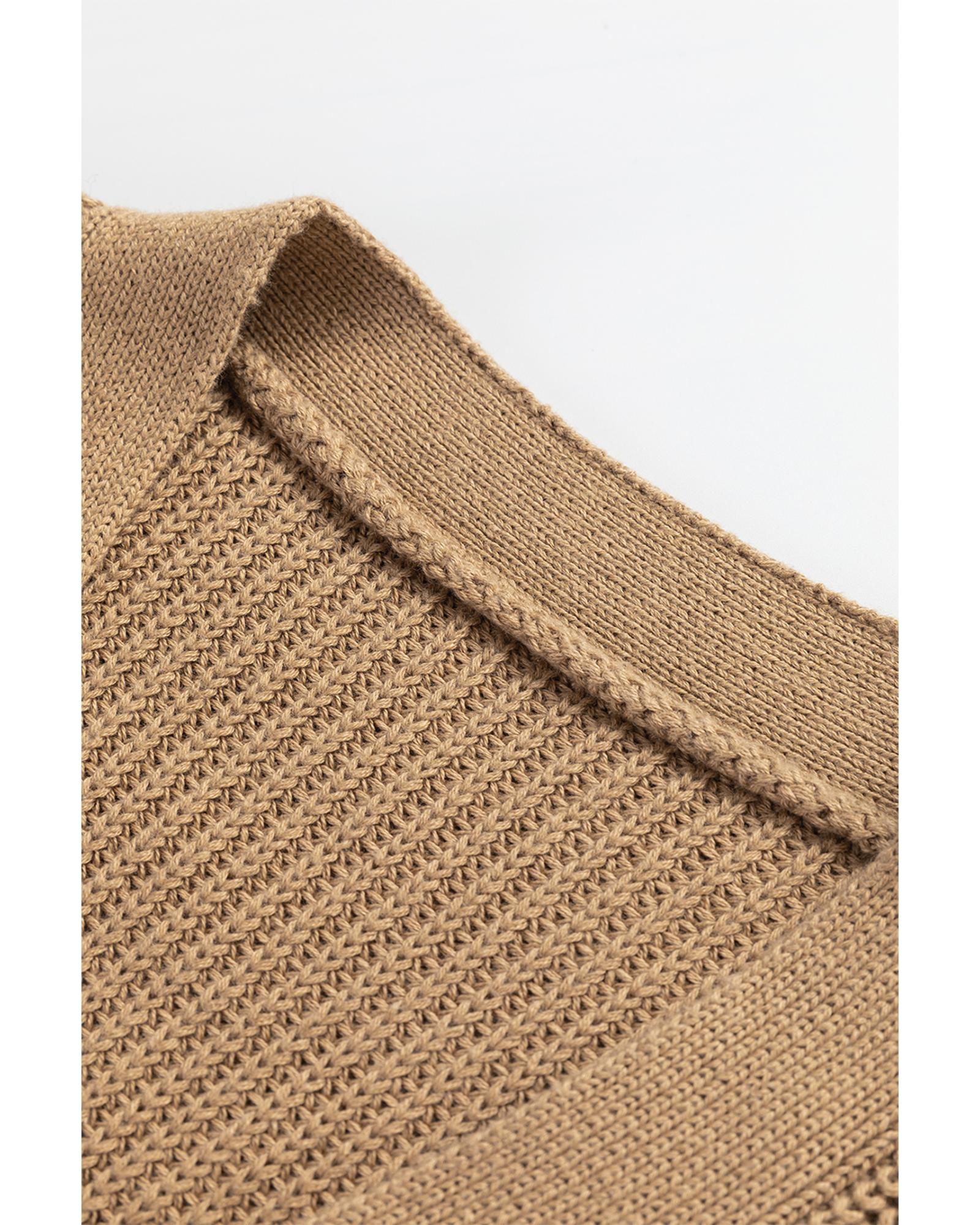 Beige Cable Knit Pumpkin Raw Hem V Neck Loose Sweater - S
