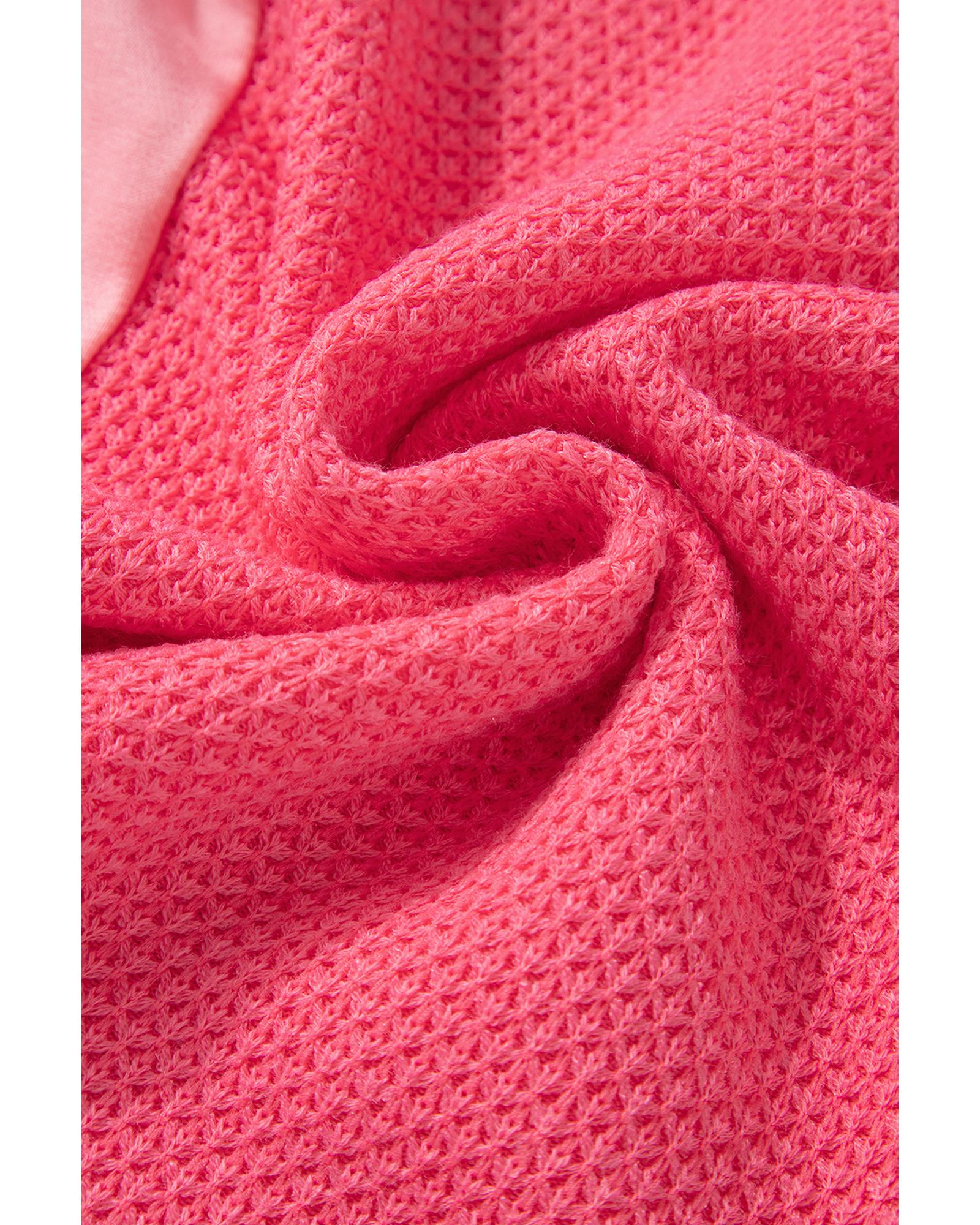 Peach Blossom Two Tone Contrast Waffle Knit Buttoned Loose Shacket – M