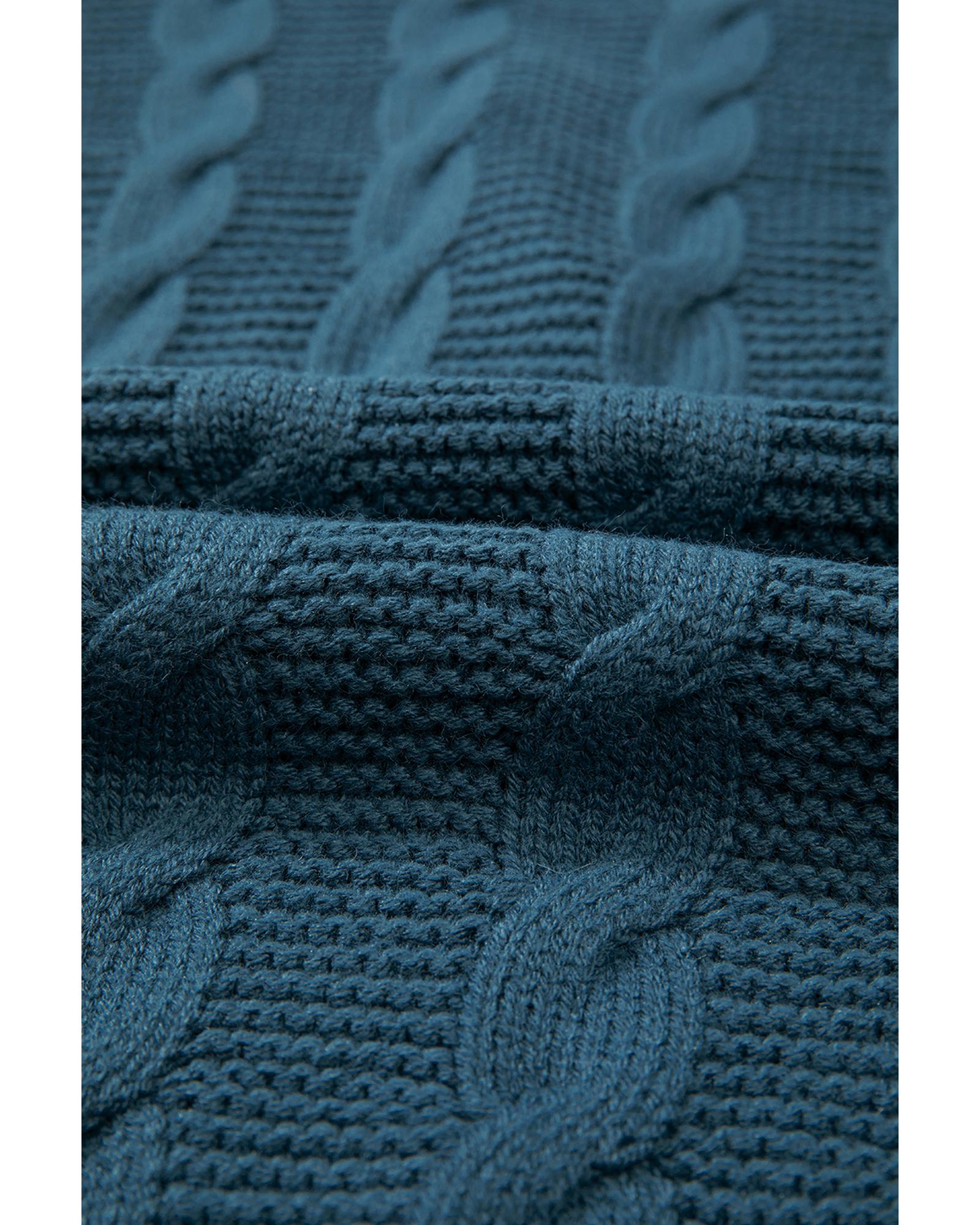 - Peacock Blue Cable Knit Button Front Pocketed Baggy Cardigan