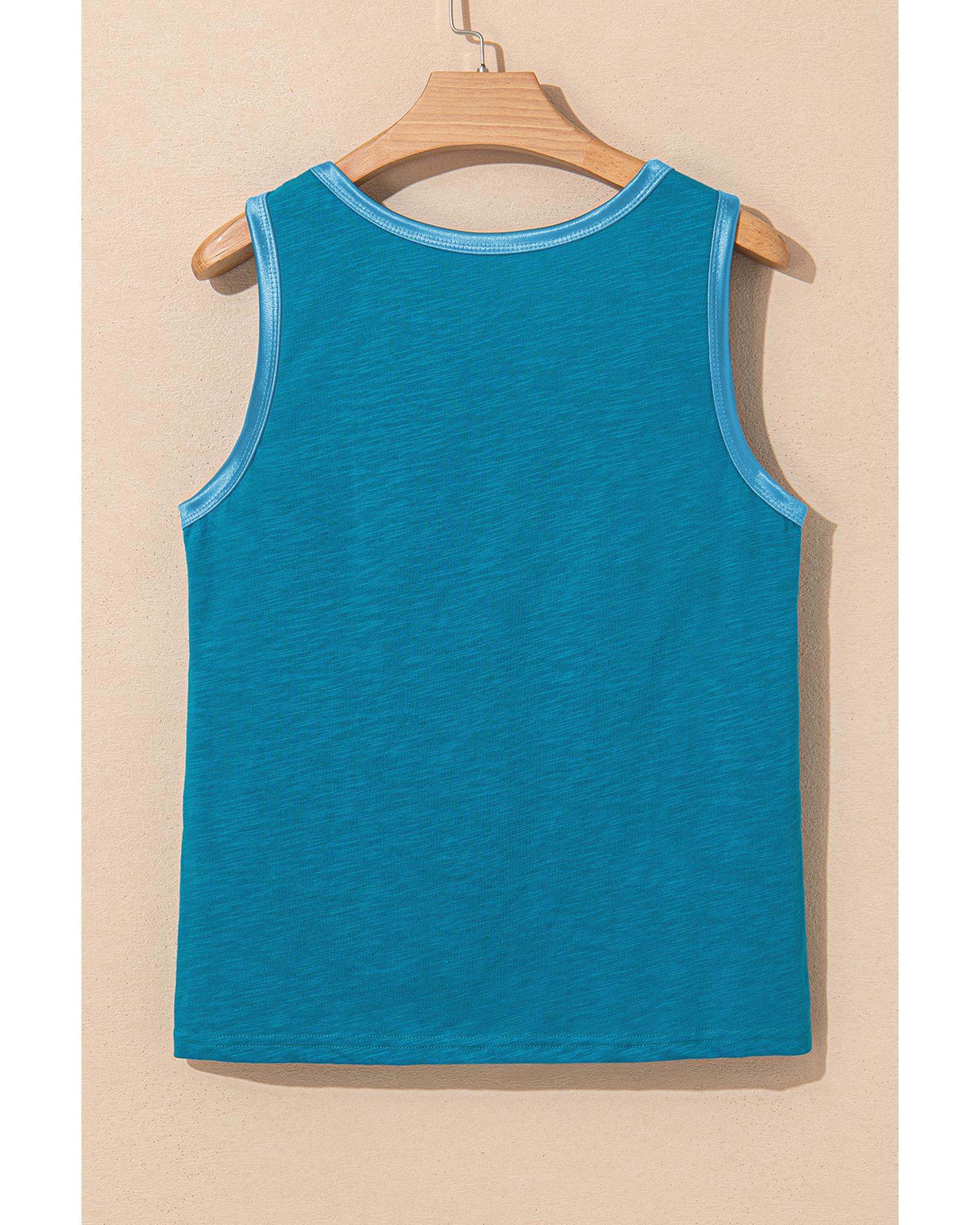 Peacock Blue Metallic Sheen Edge Scoop Neck Tank Top – L