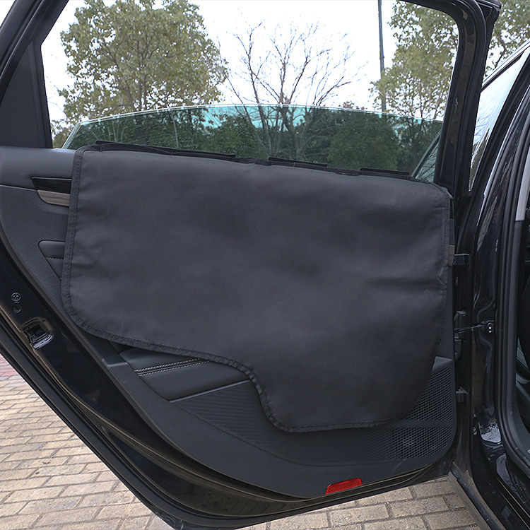 Ensure your pet’s safety and keep your car clean with the Pet Car Door Protector, a must-have accessory for pet owners on the go. Measuring 77 cm wide and 64 cm high, this protector is designed to prevent your dog from jumping out when the car door is open, providing peace of mind during travel. It features a two-layer design with a grey fabric front for a sleek look and a black waterproof back to protect your car interior from dirt, scratches, and spills.