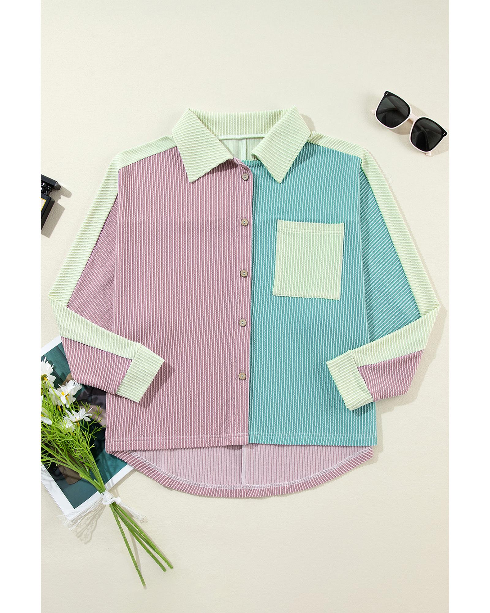 Phalaenopsis Color Block Corded Buttoned Oversized Shacket - S