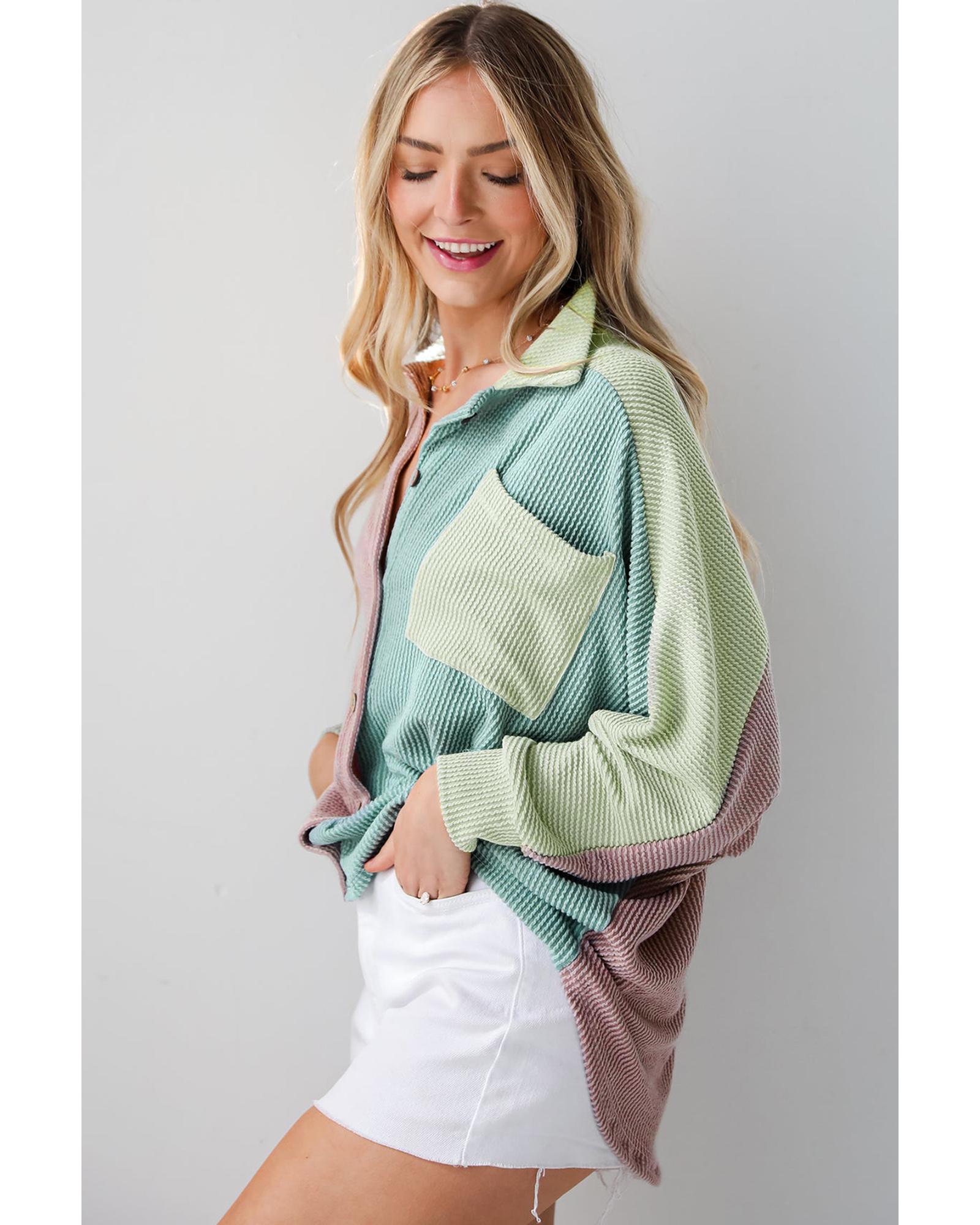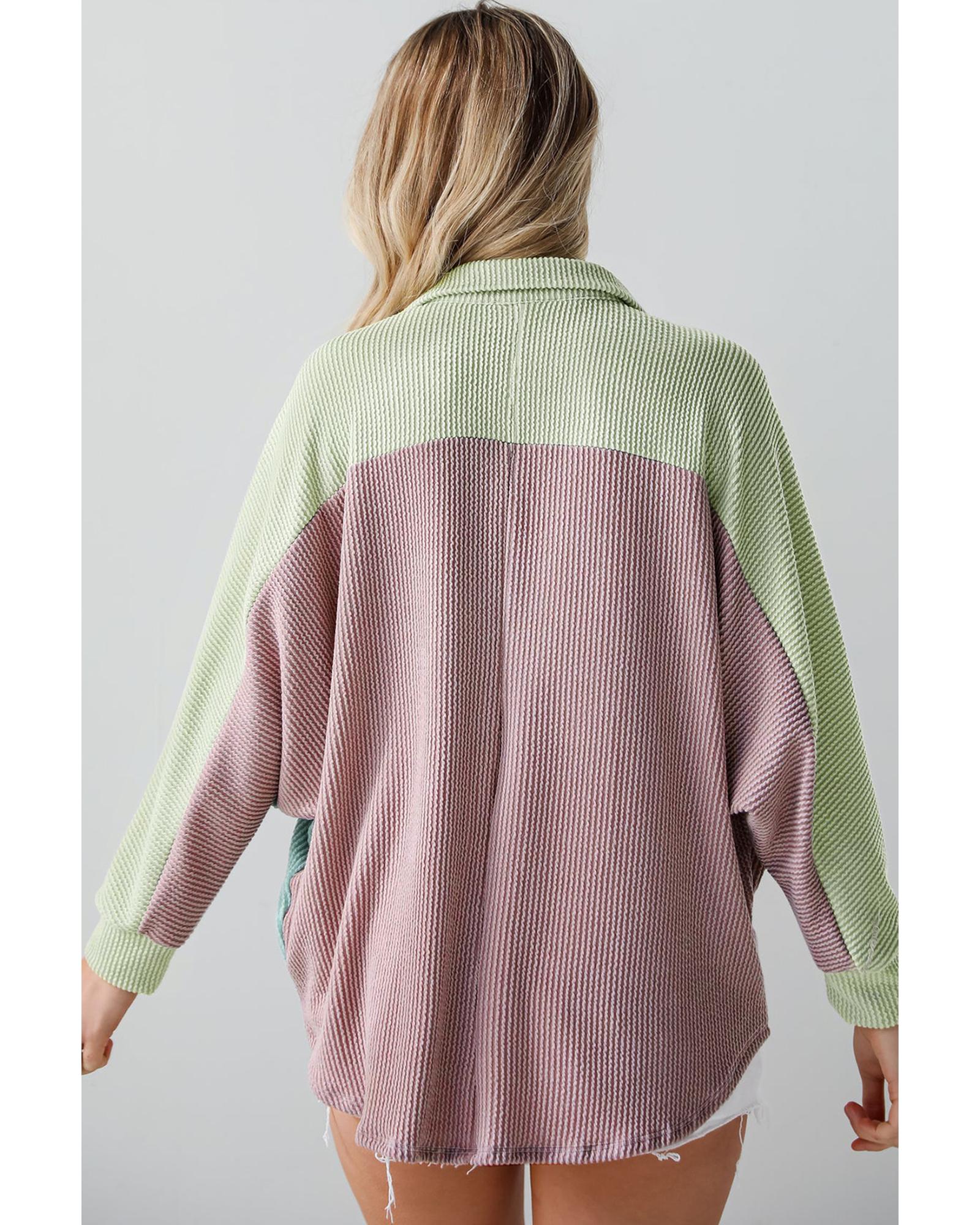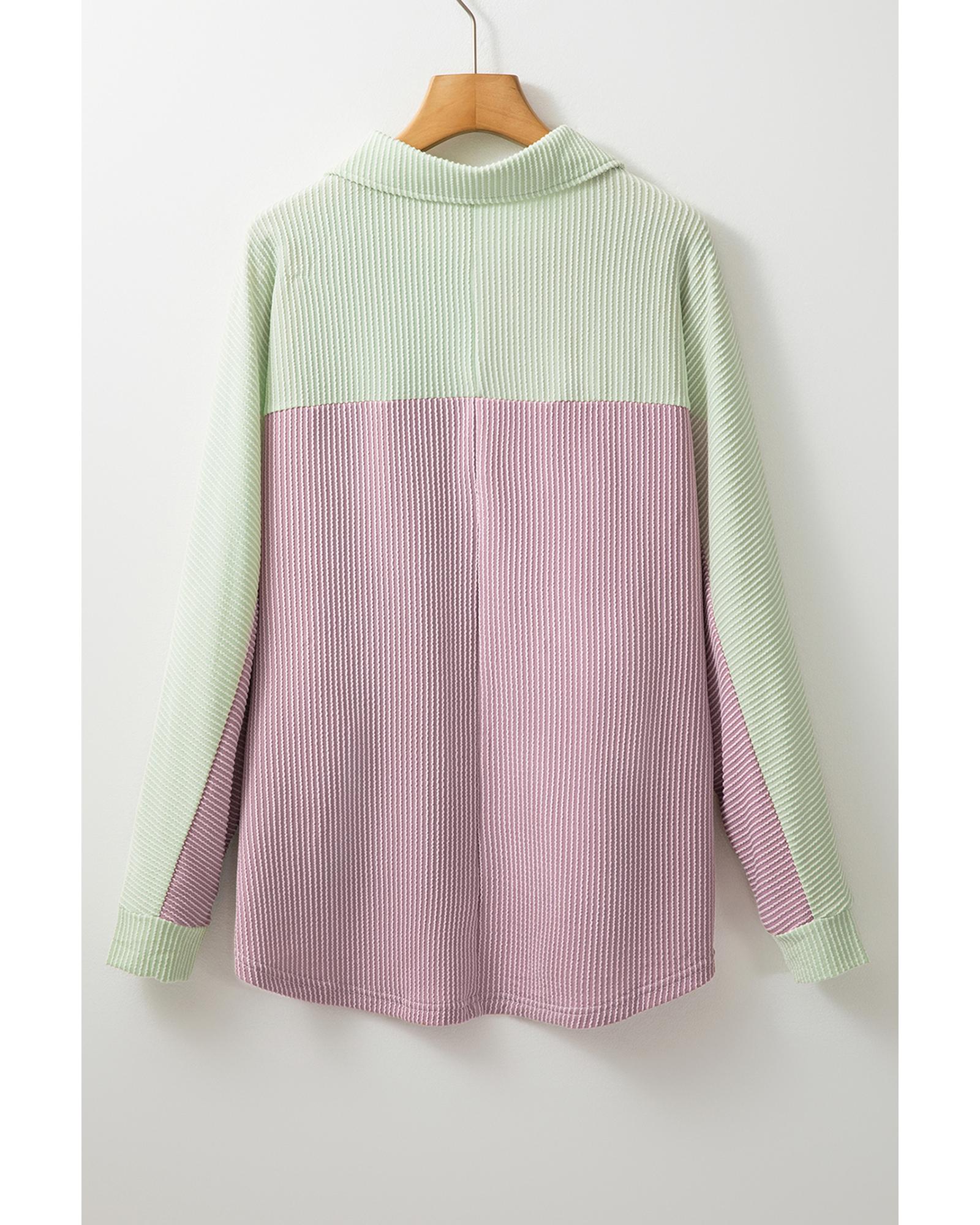 Phalaenopsis Color Block Corded Buttoned Oversized Shacket – M