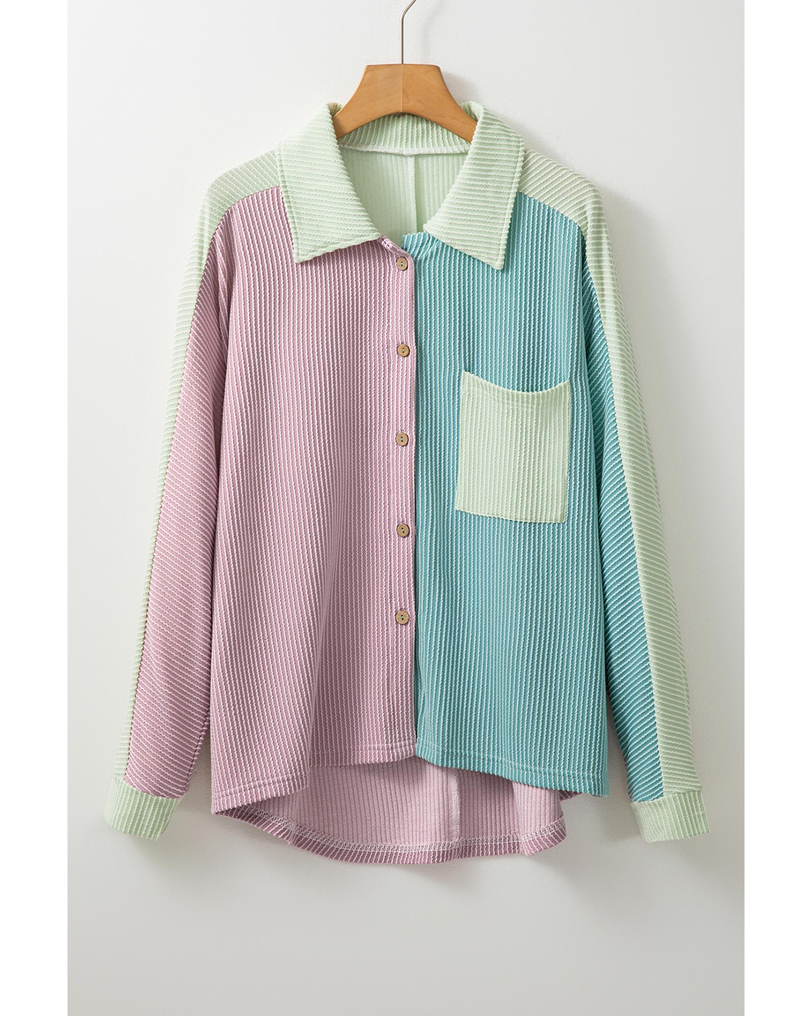 Phalaenopsis Color Block Corded Buttoned Oversized Shacket - M