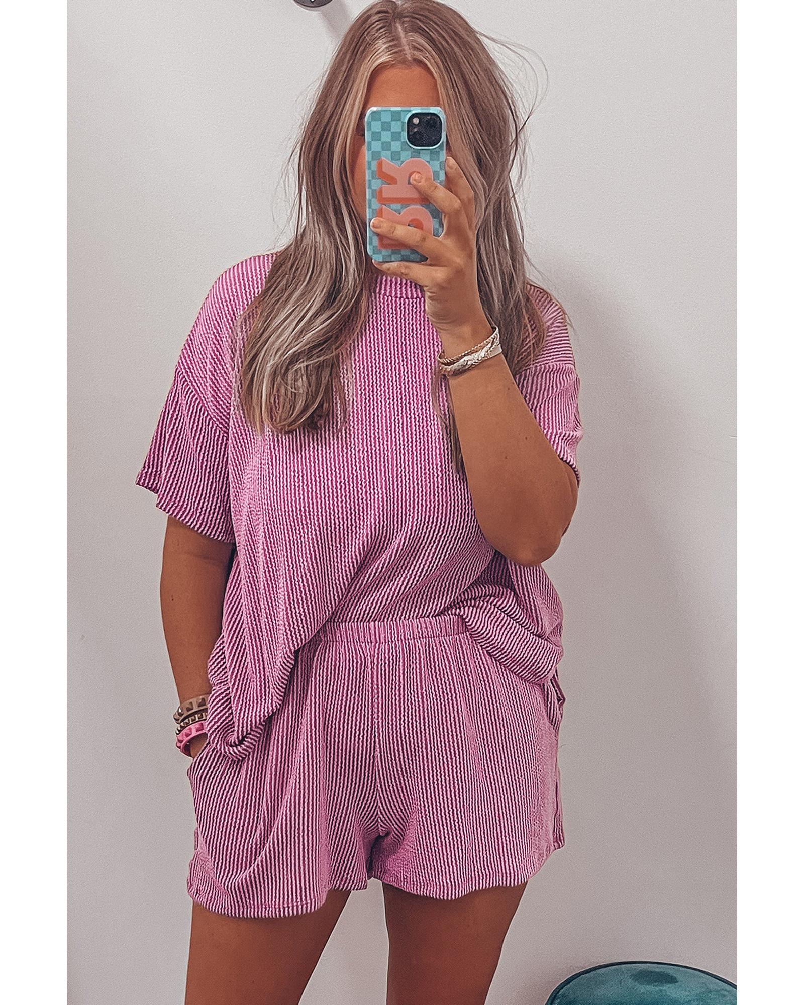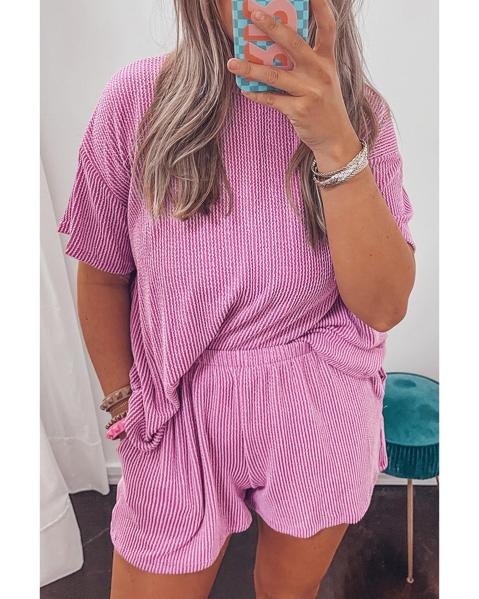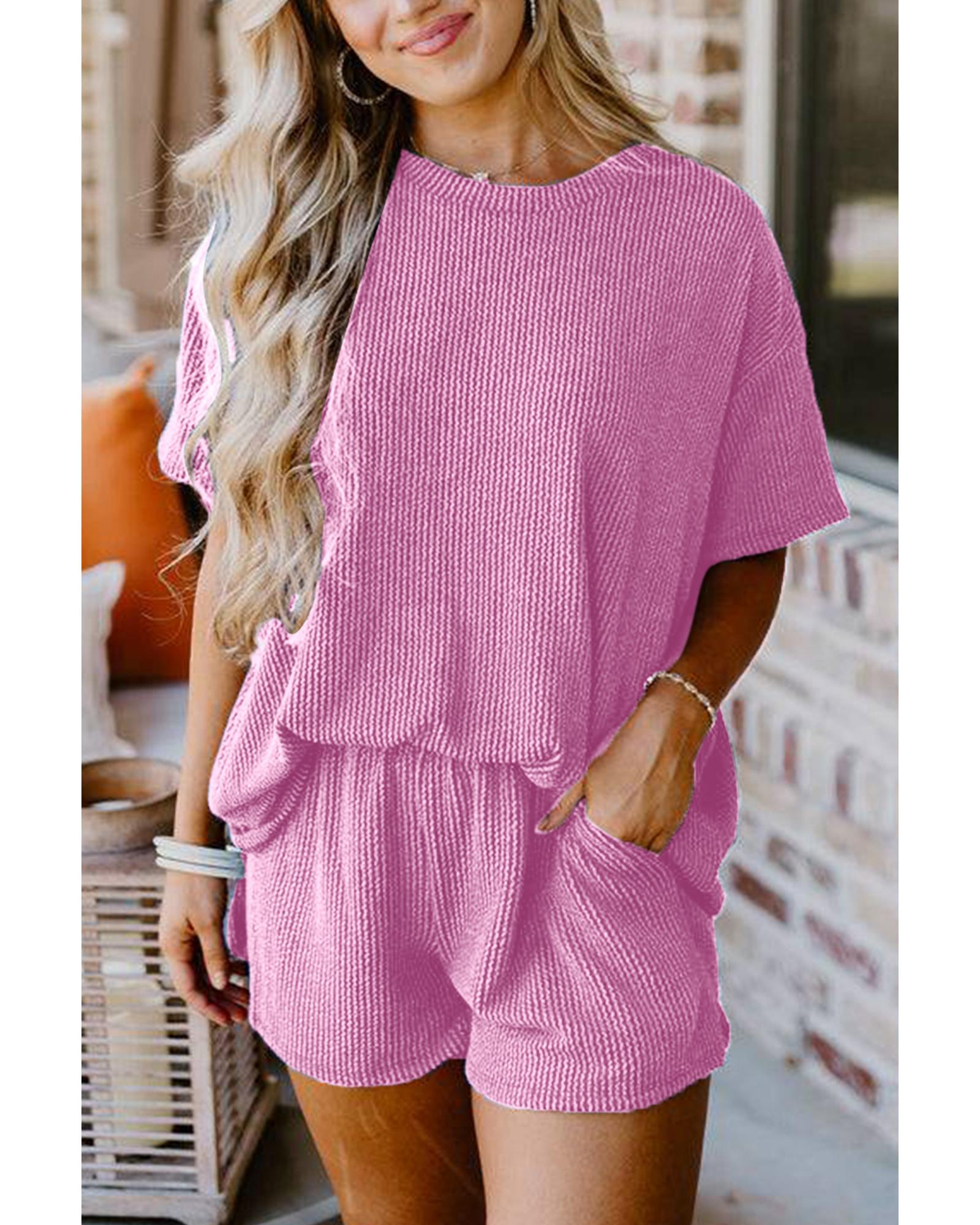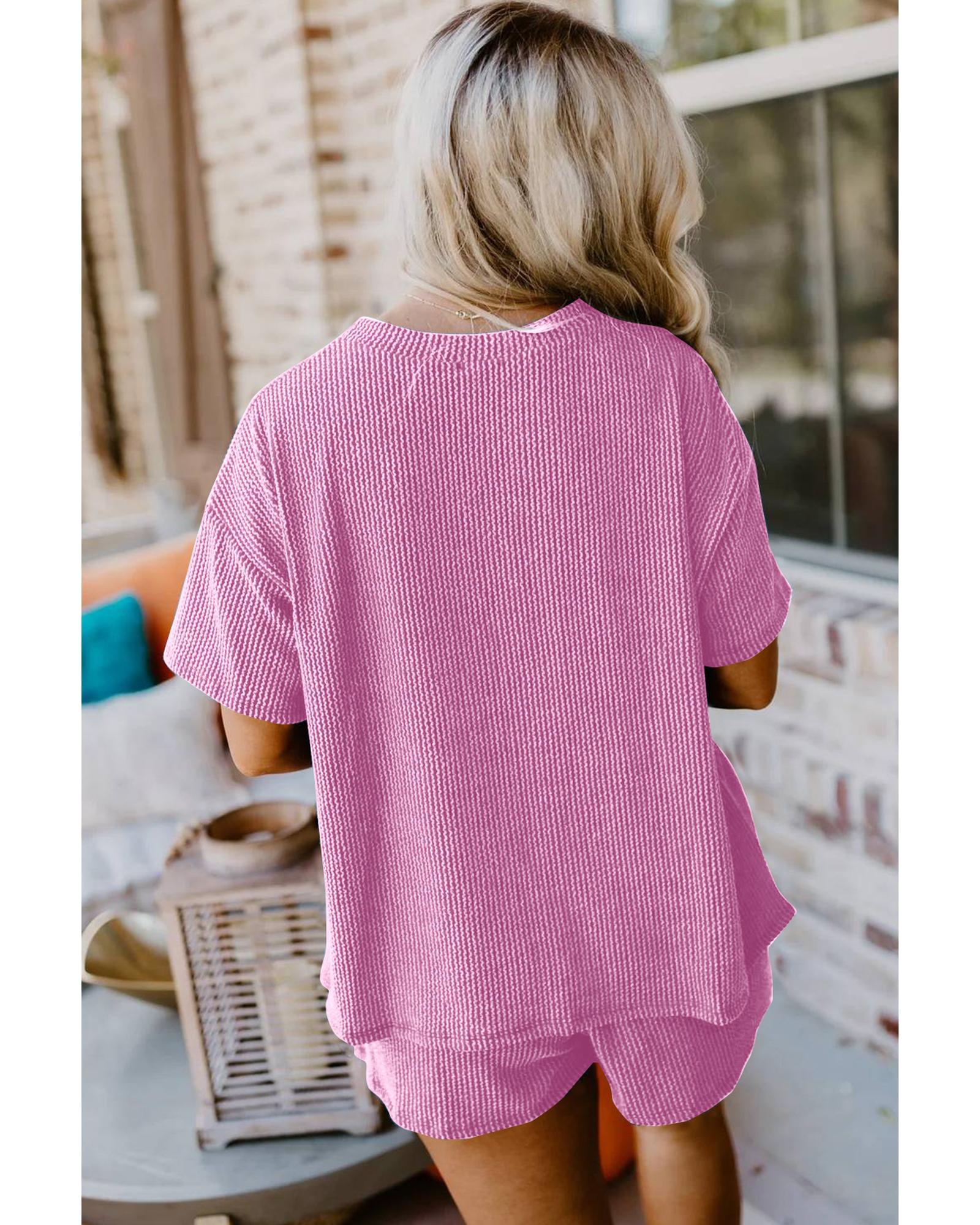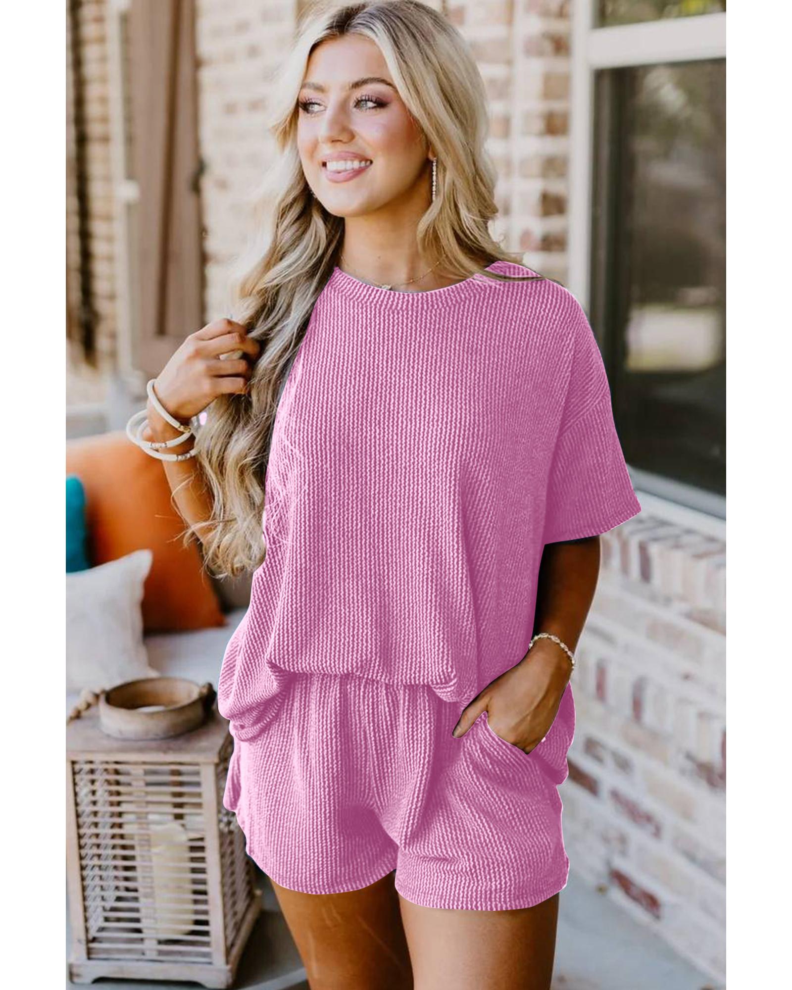 • Luxurious and comfortable Phalaenopsis Ribbed Textured Knit Loose Fit Tee and Shorts Set