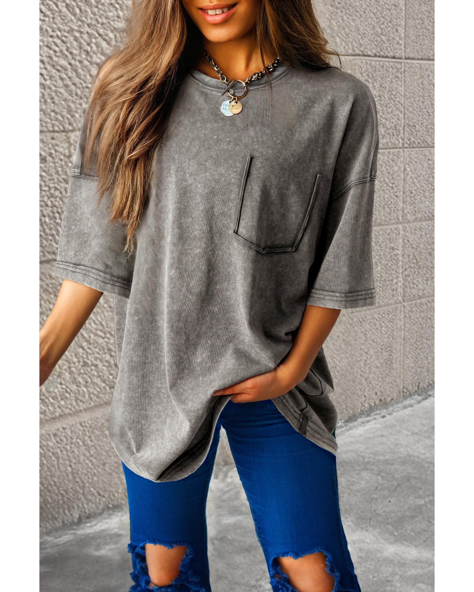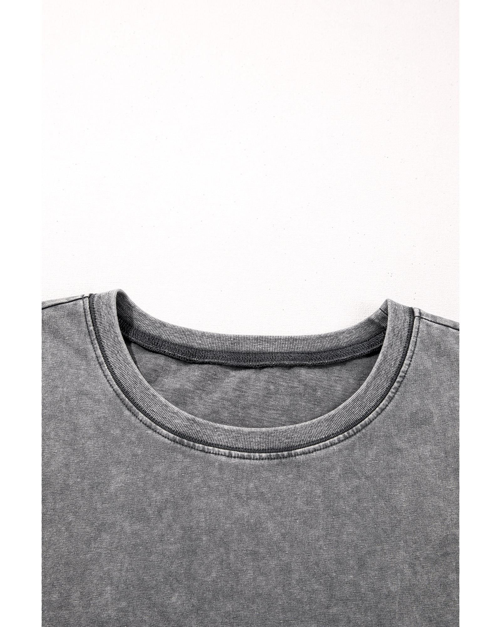 Philippine Gray Mineral Wash Half Sleeve Boyfriend Vintage T Shirt – L