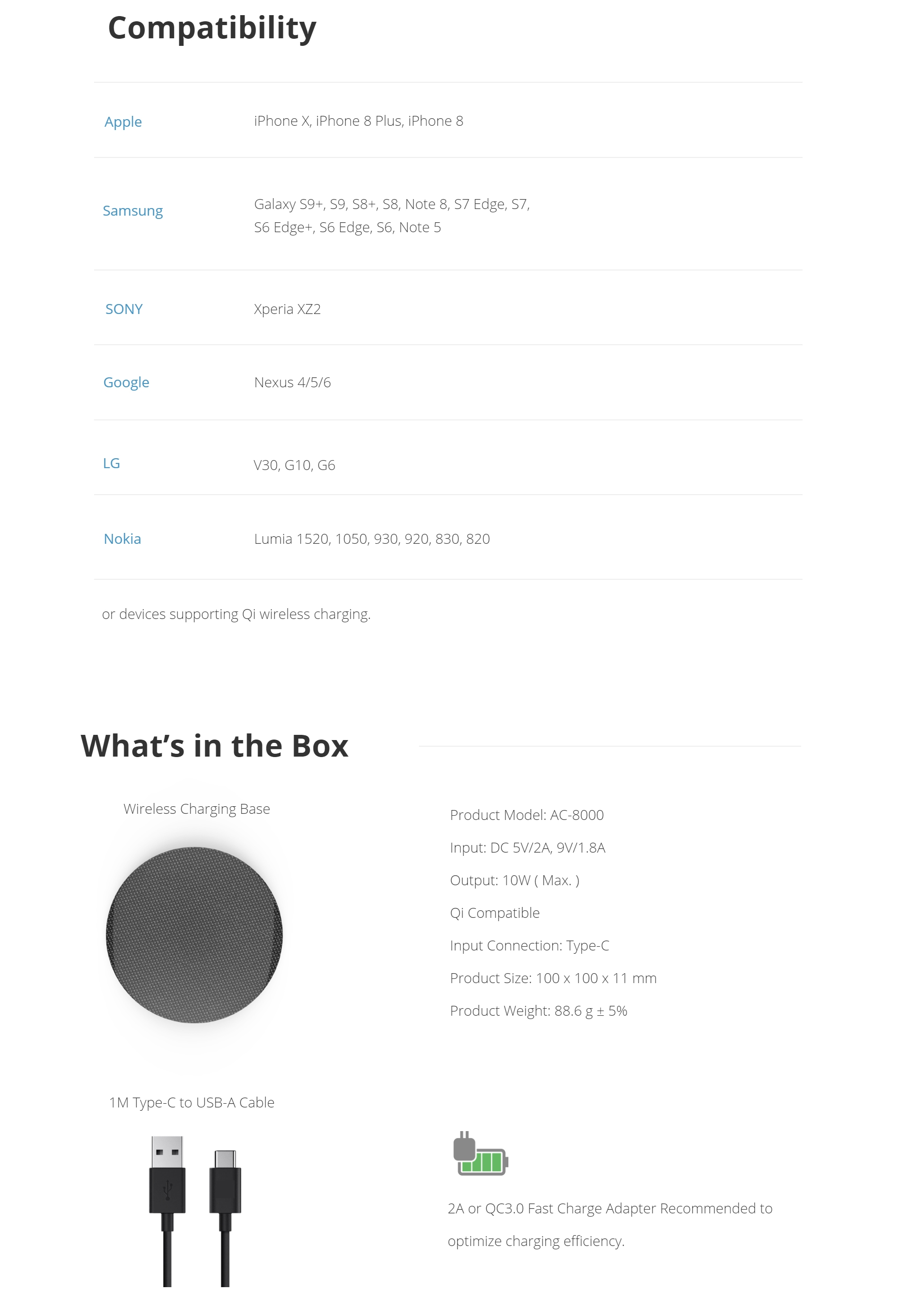 Photofast AirCharge Qi Compatible 10W Fast Charge (SKU:AC8000)