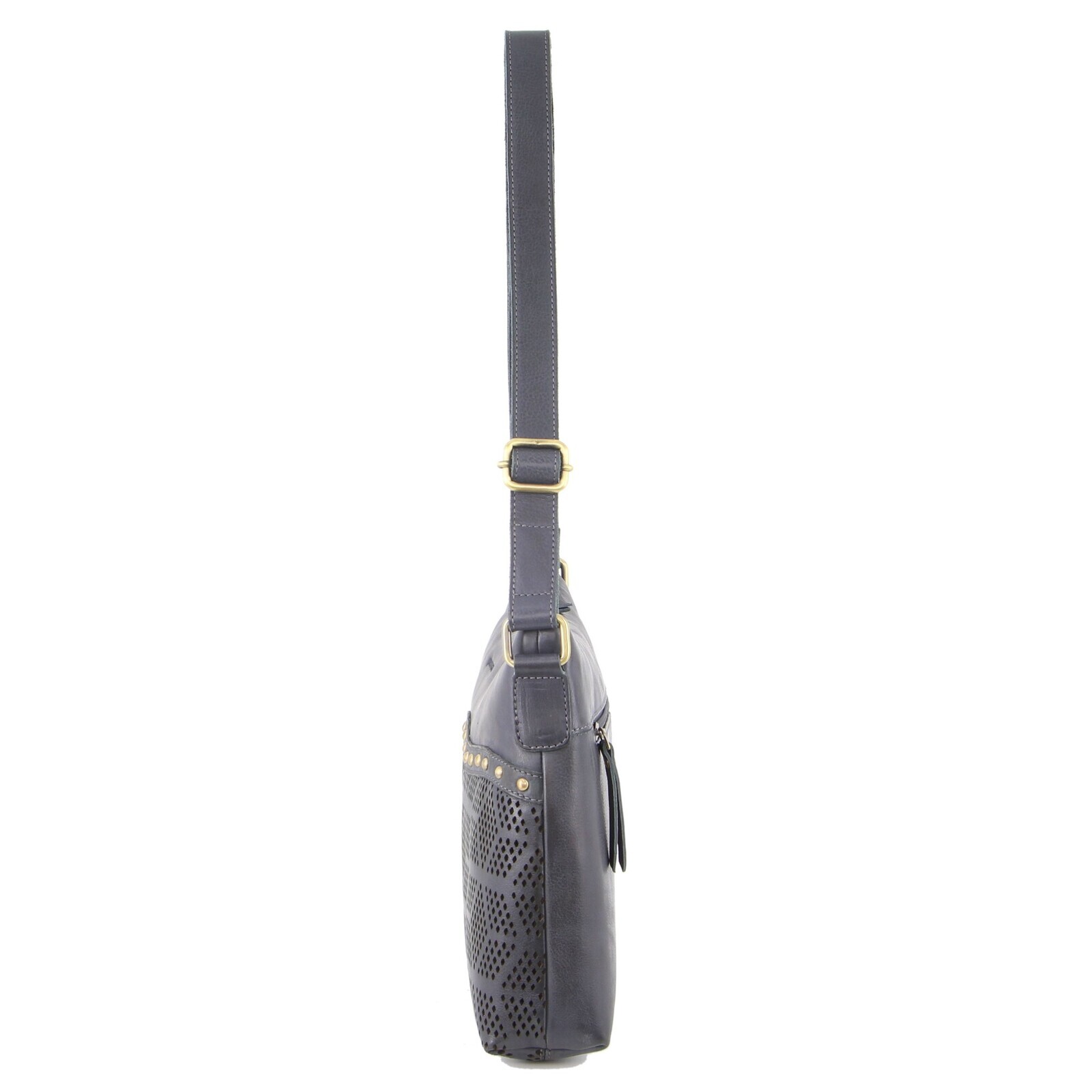 Pierre Cardin Womens Leather Perforated Cross-Body Bag with stud Detailing – Teal