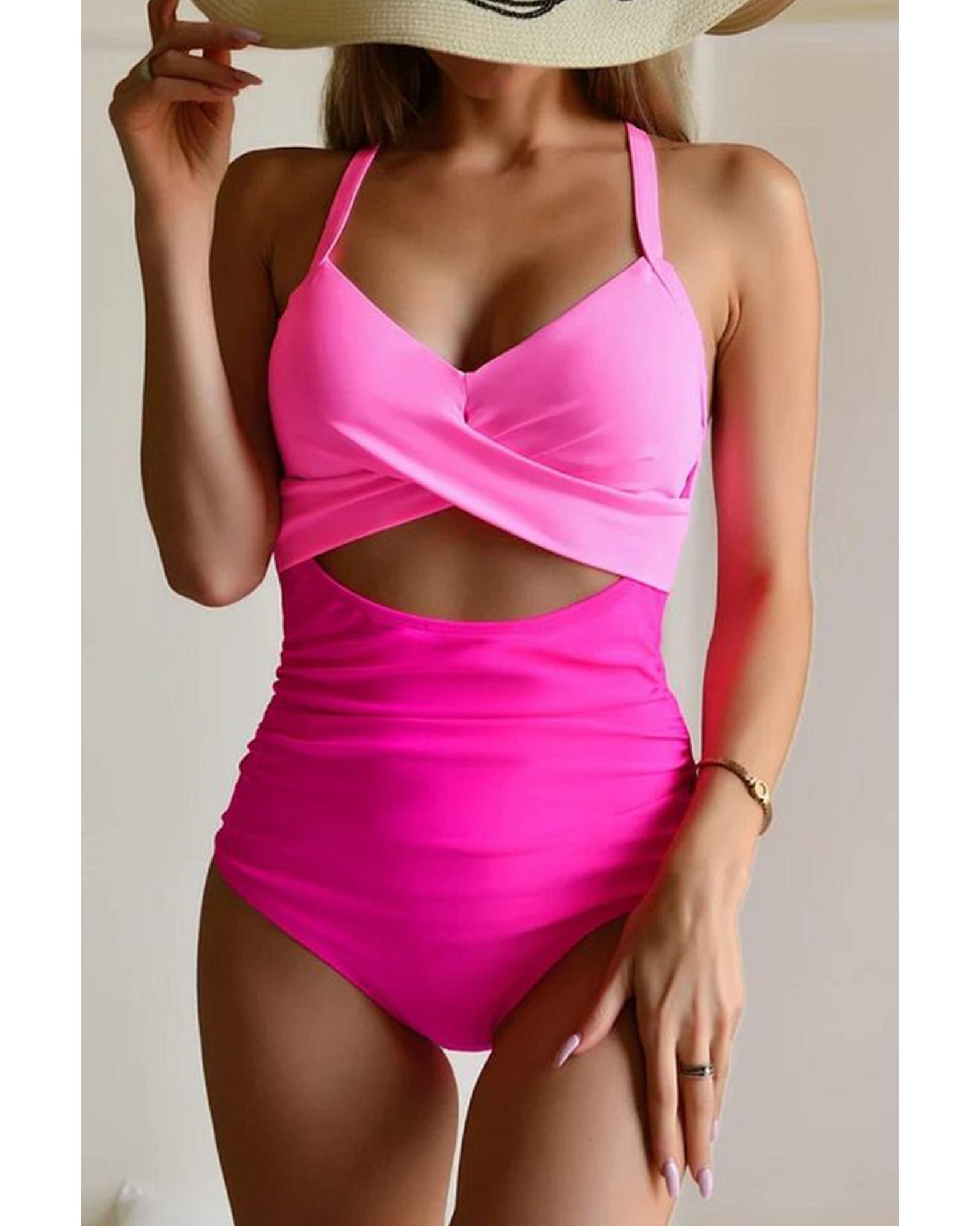 Pink 2-tone Crossed Cutout Backless Monokini – 2XL
