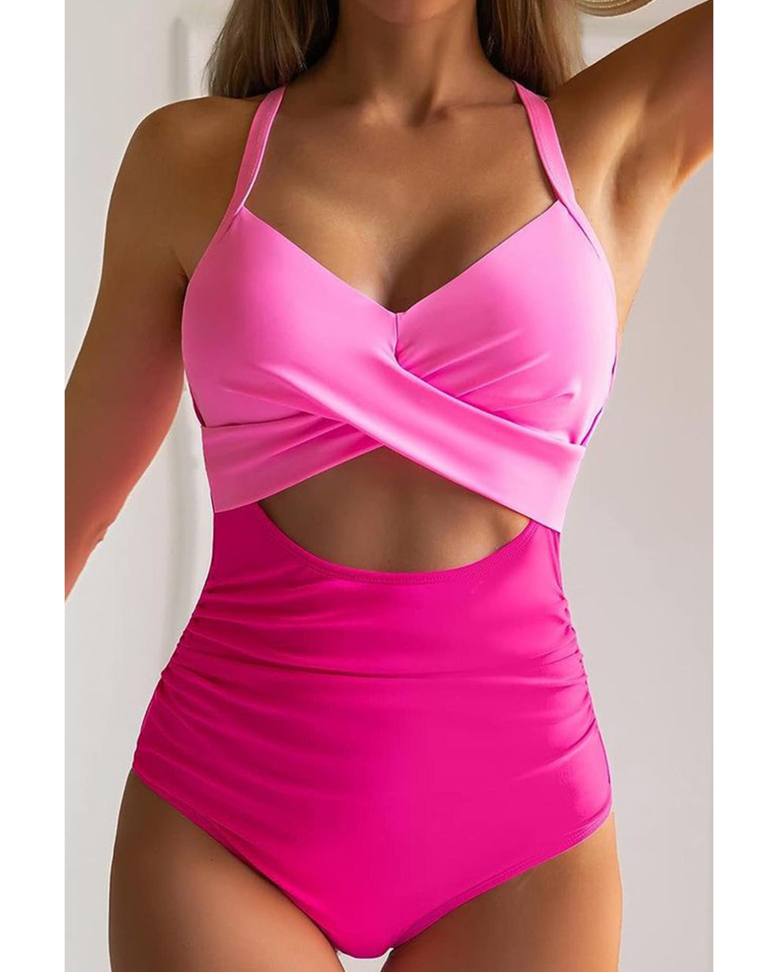 Pink 2-tone Crossed Cutout Backless Monokini – XL