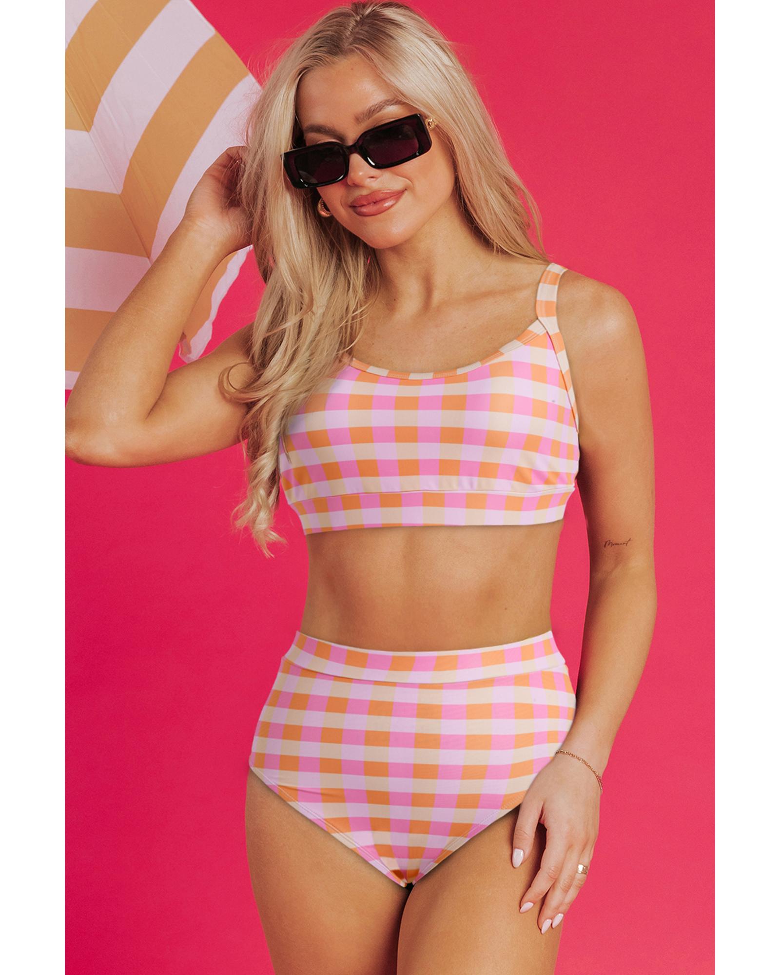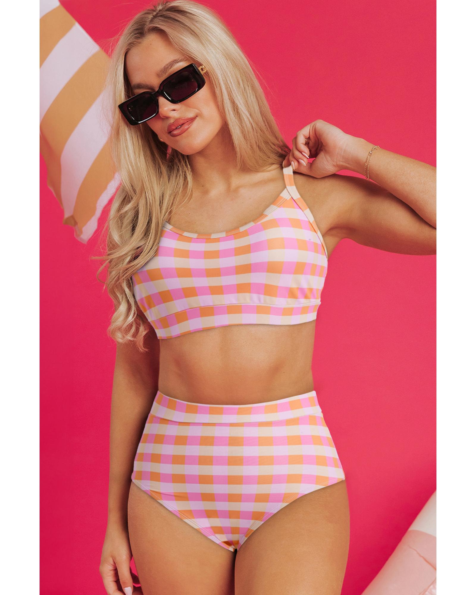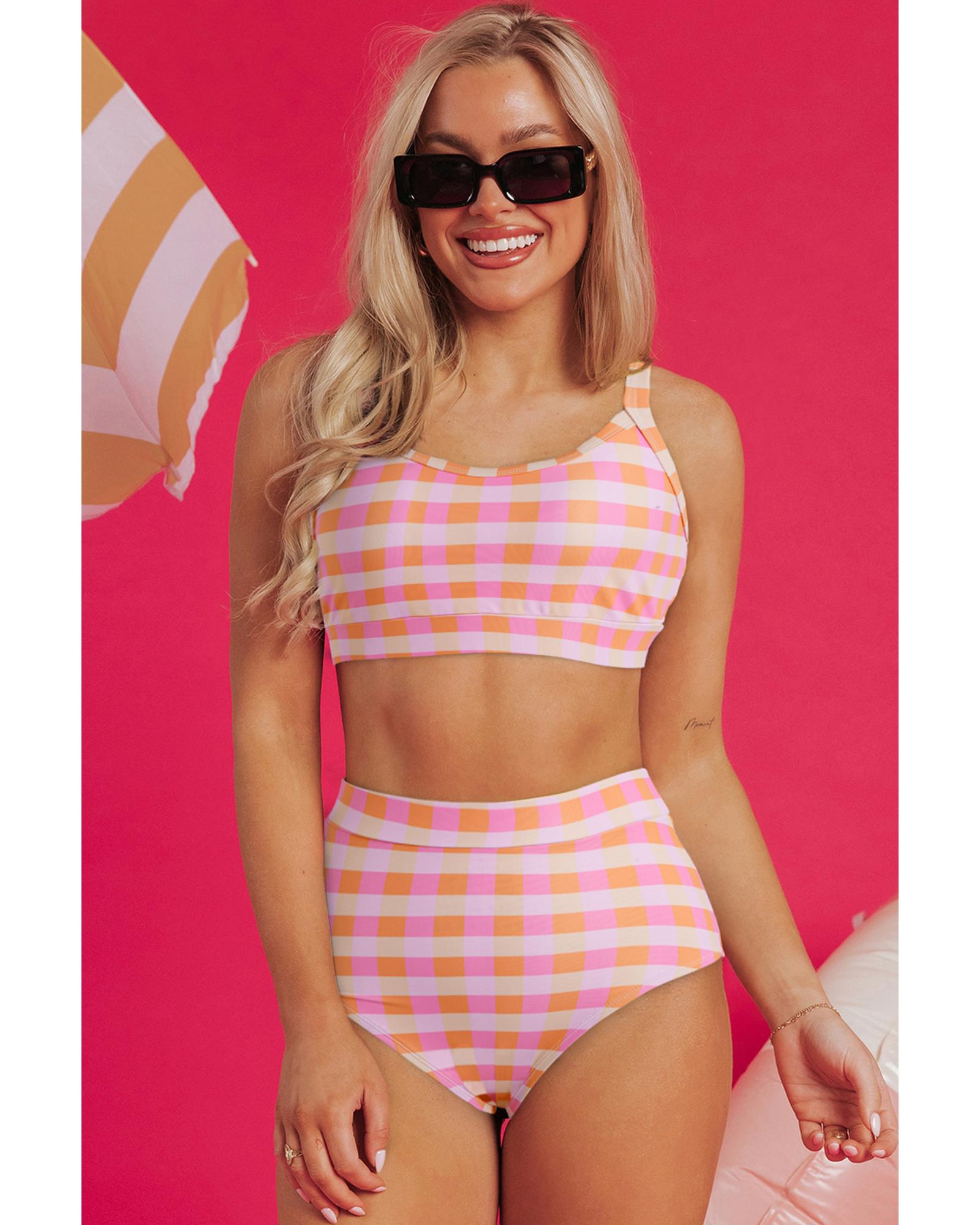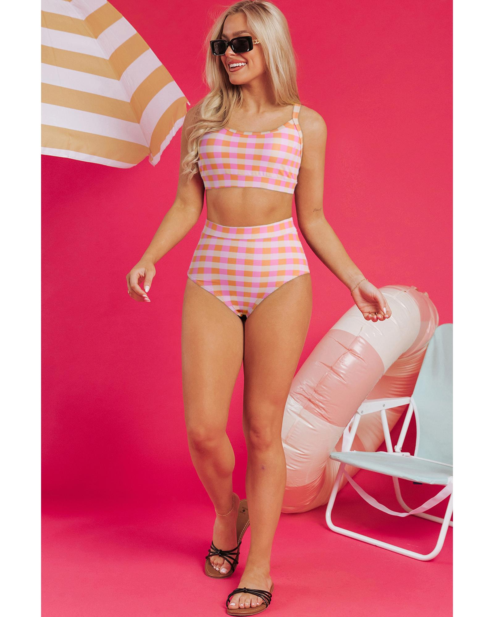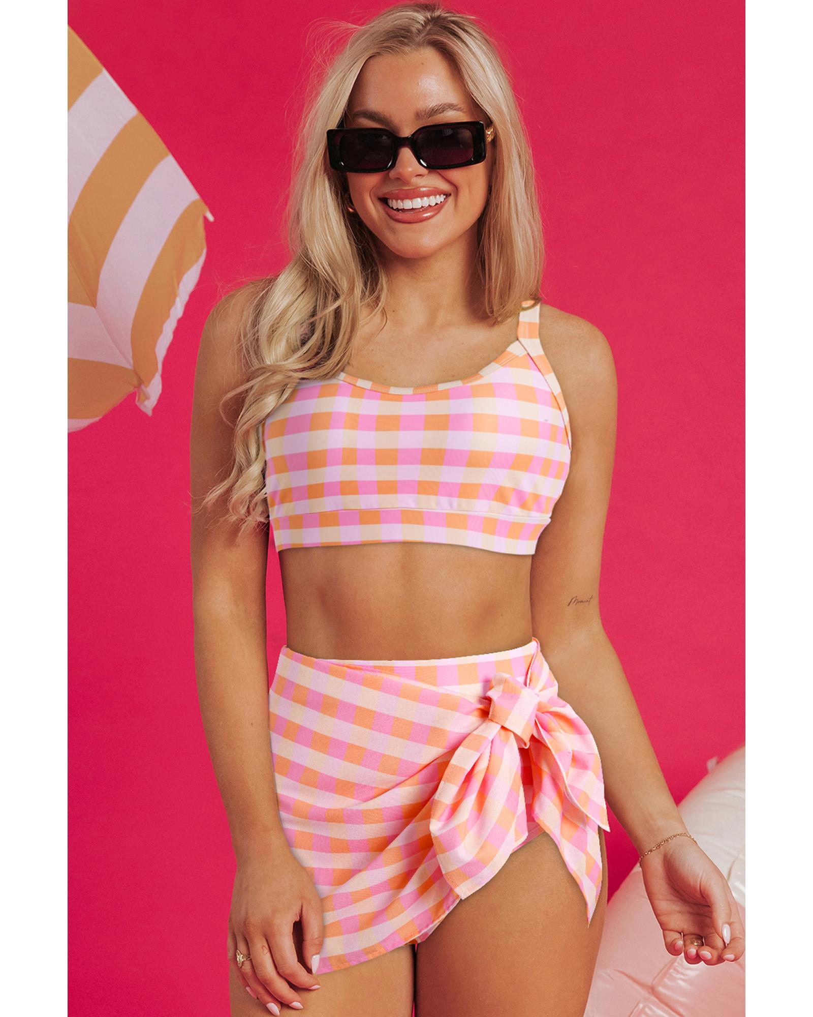 Pink 3pcs Gingham High Waist Bikini & Sarong – XL