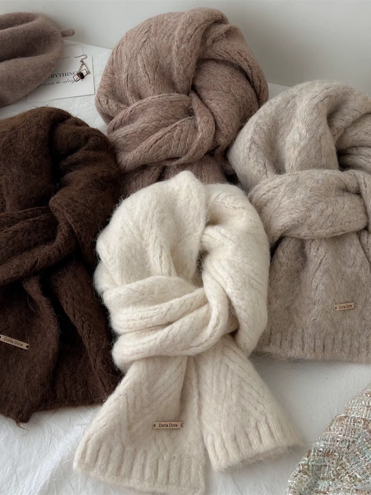 Alpaca Wool Blend Solid Color Knitted Scarf for Women Winter New Style Student High Quality Couple Woolen Neck Warmer