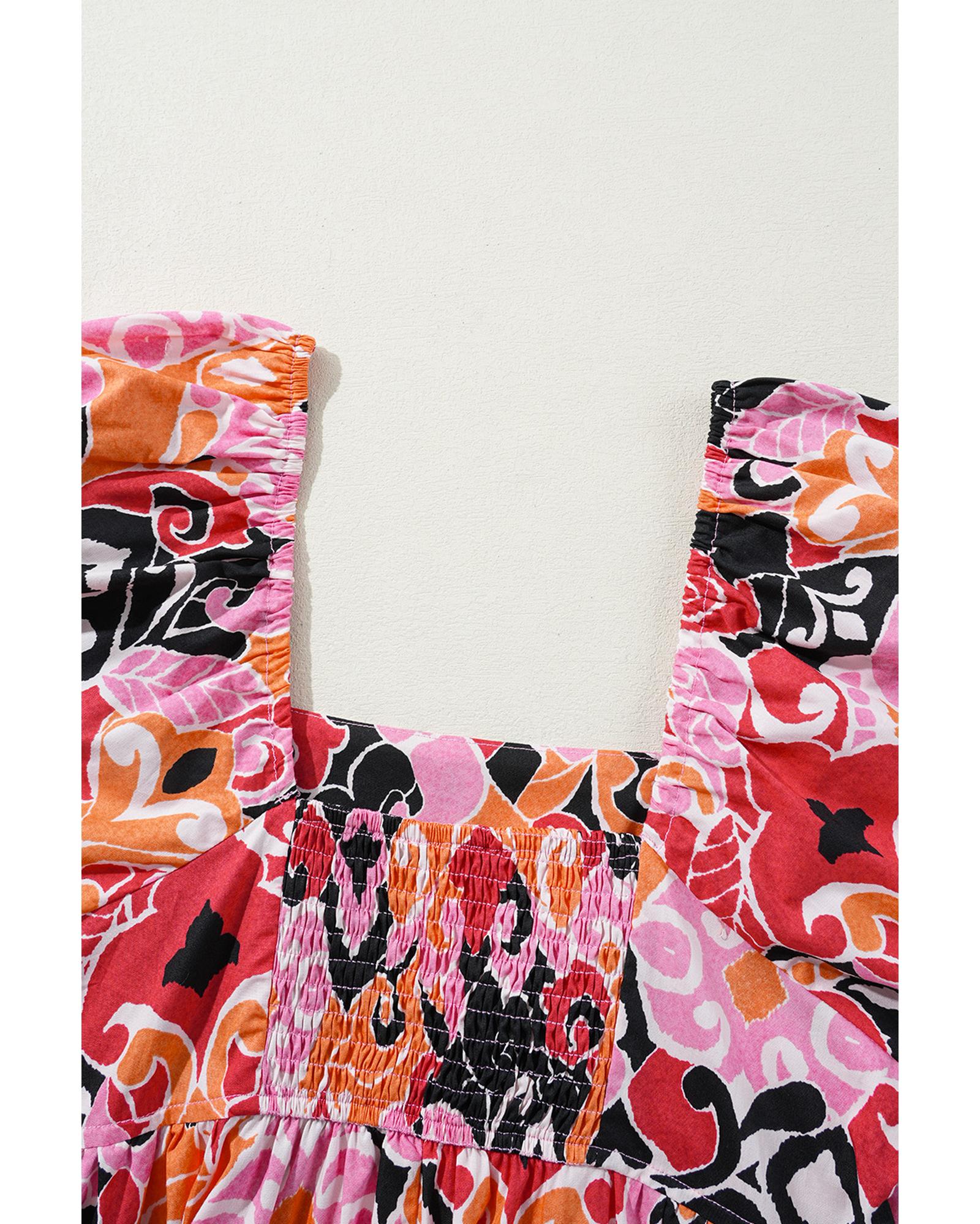 Pink Bohemian Square Neck Puff Sleeve Mini Dress – M