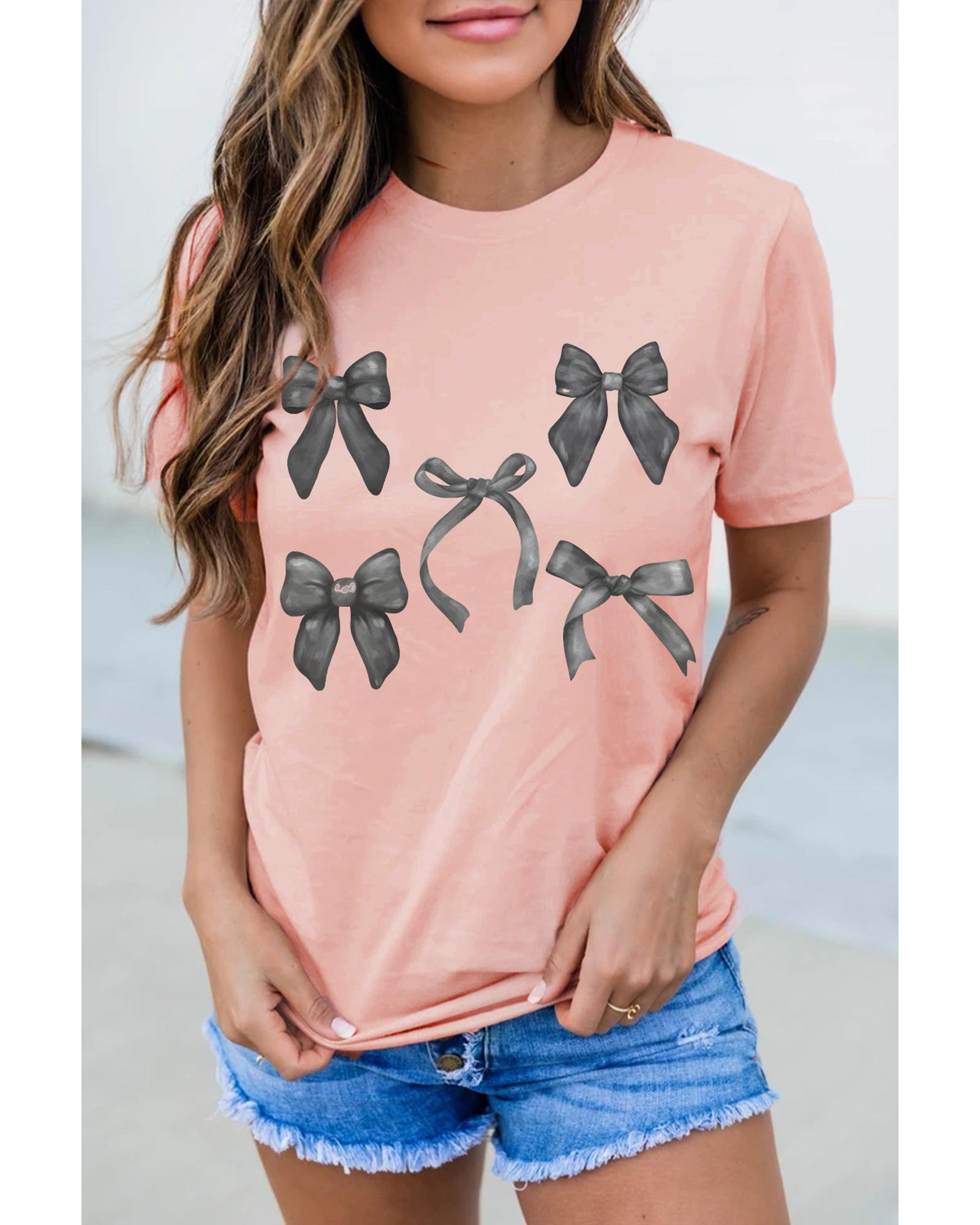 - Pink Bow Knots Print Slim Fit Crew Neck T