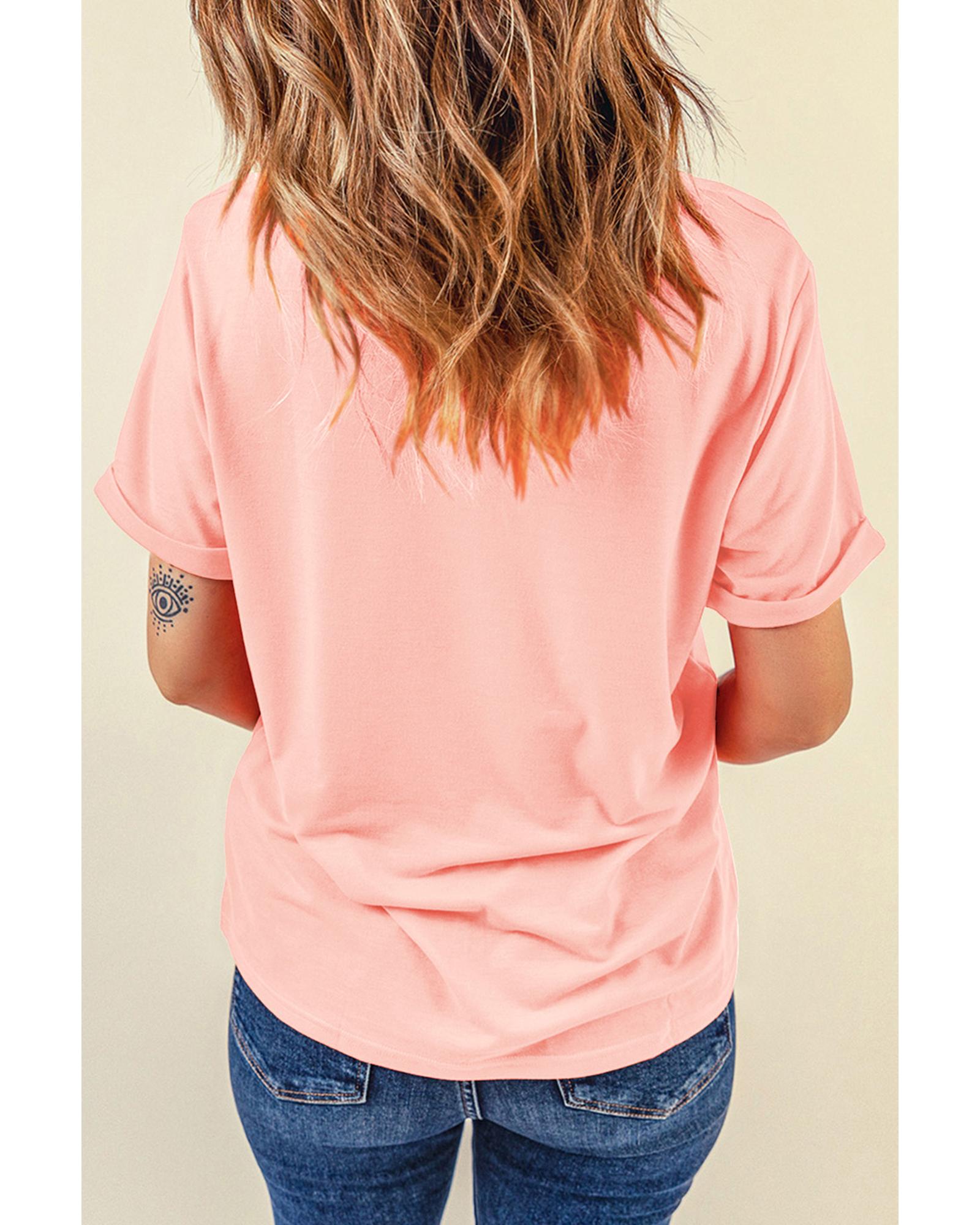 Pink Bow Knots Print Slim Fit Crew Neck T Shirt – XL