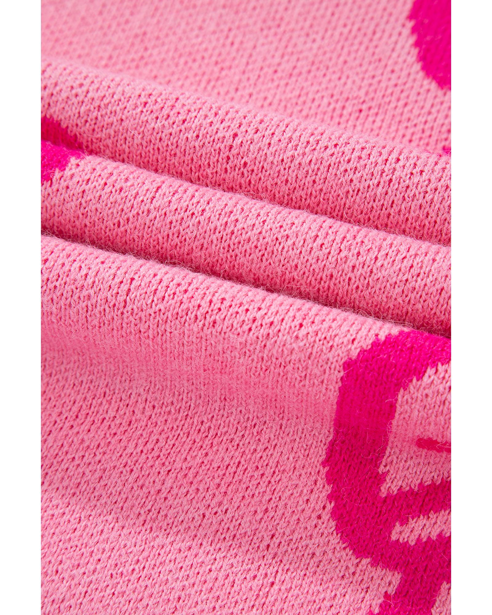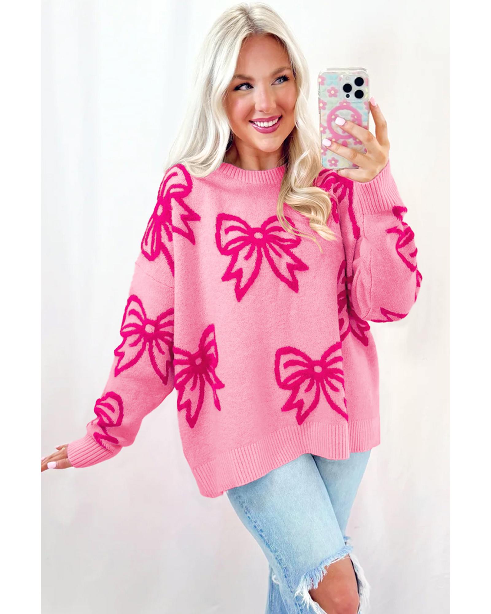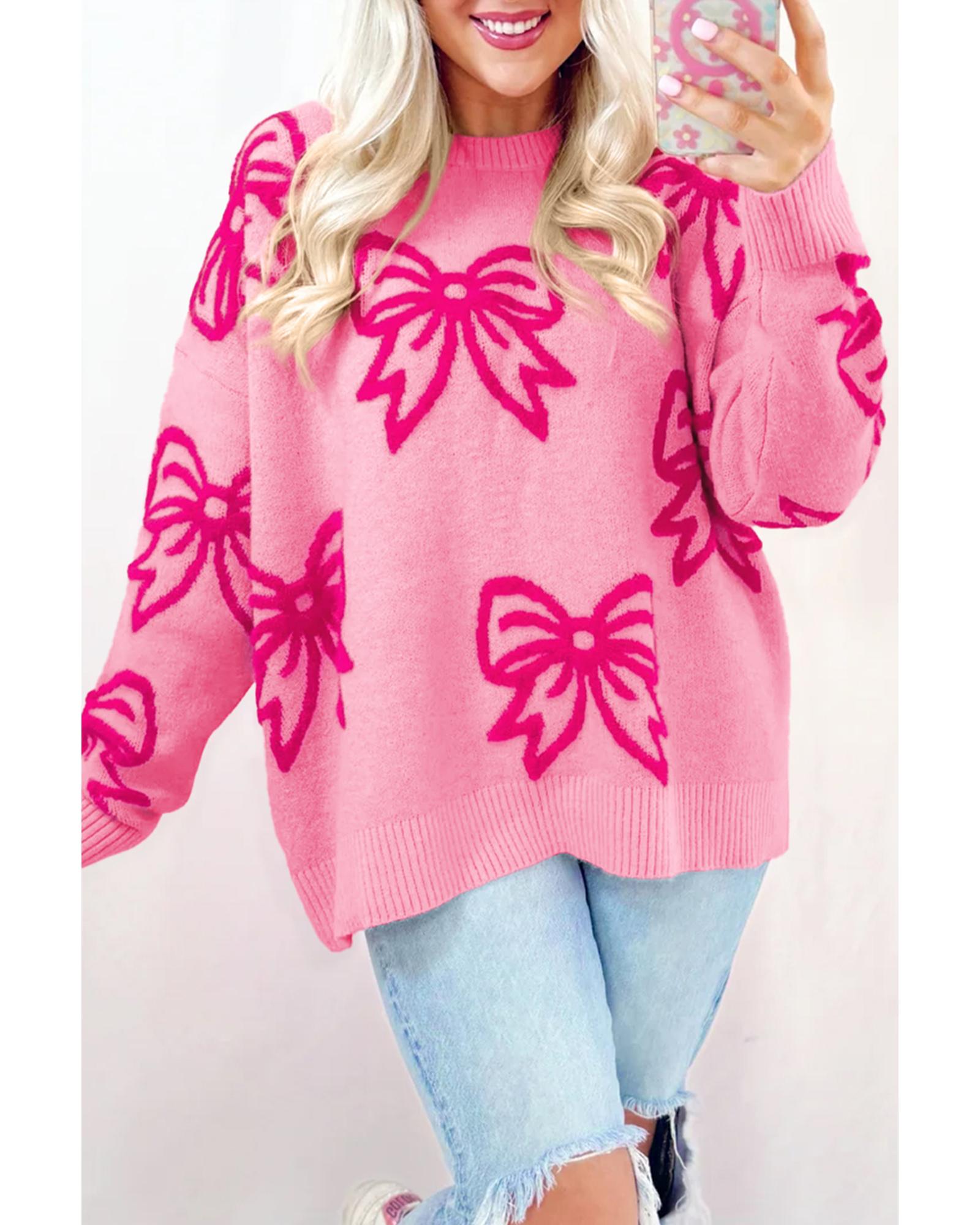 Pink Bow Pattern Drop Shoulder Loose Sweater – XL