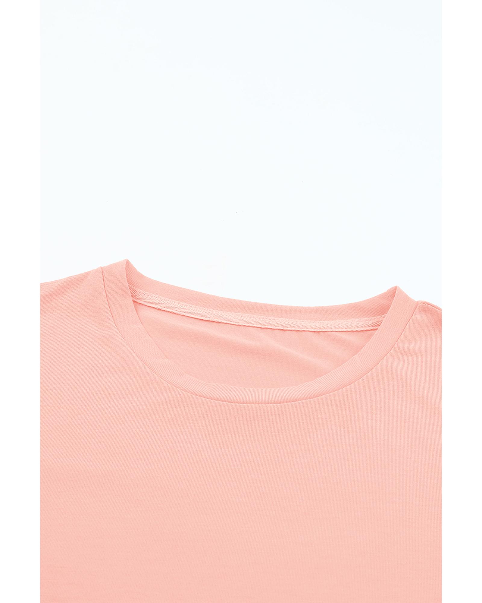 Rose Polka Dot Print Shirred Yoke Notched Neck Balloon Sleeve Blouse - M