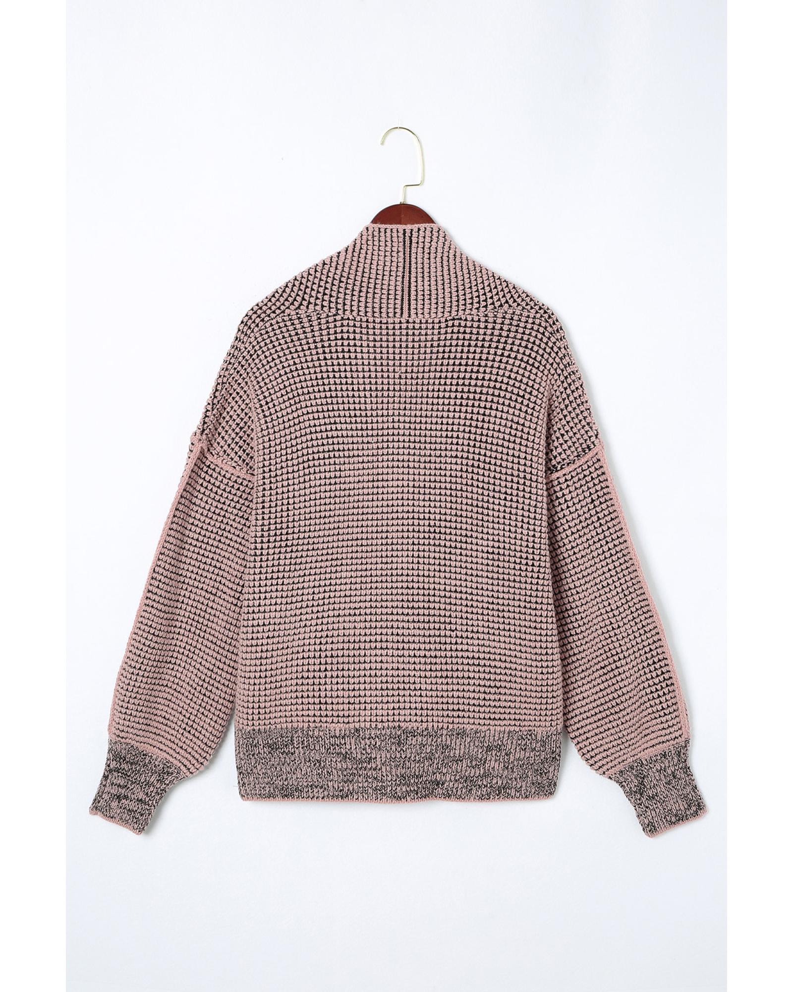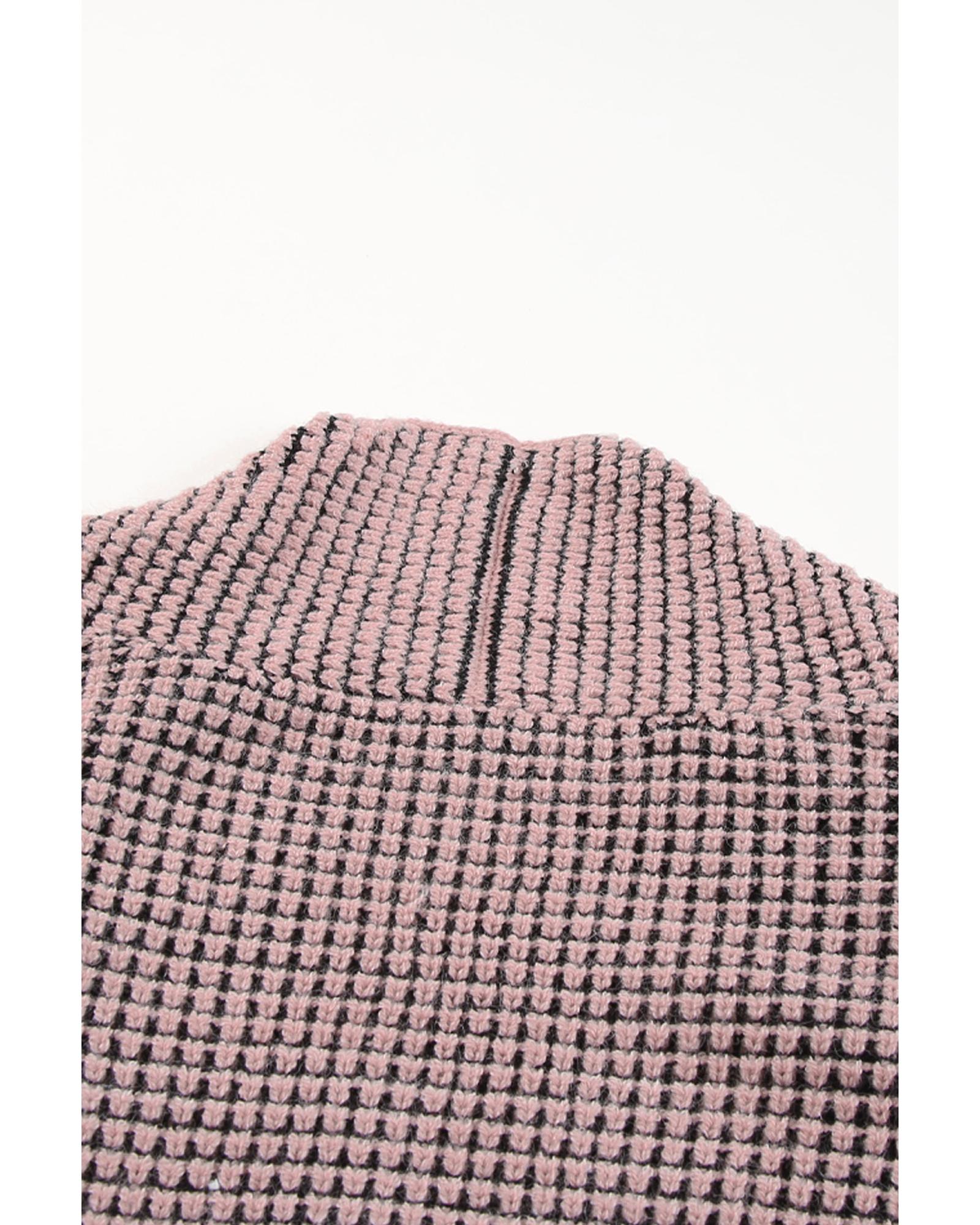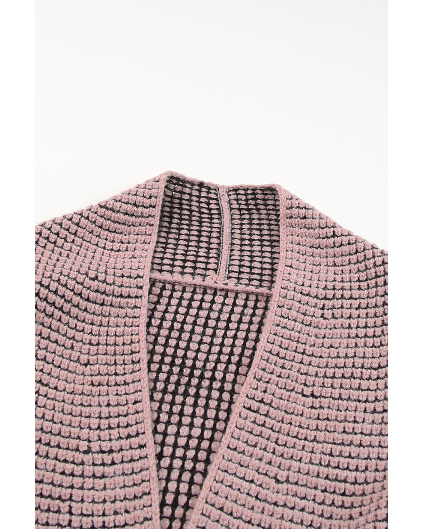 Pink Chunky Waffle Knit Oversized Collar Cardigan – M