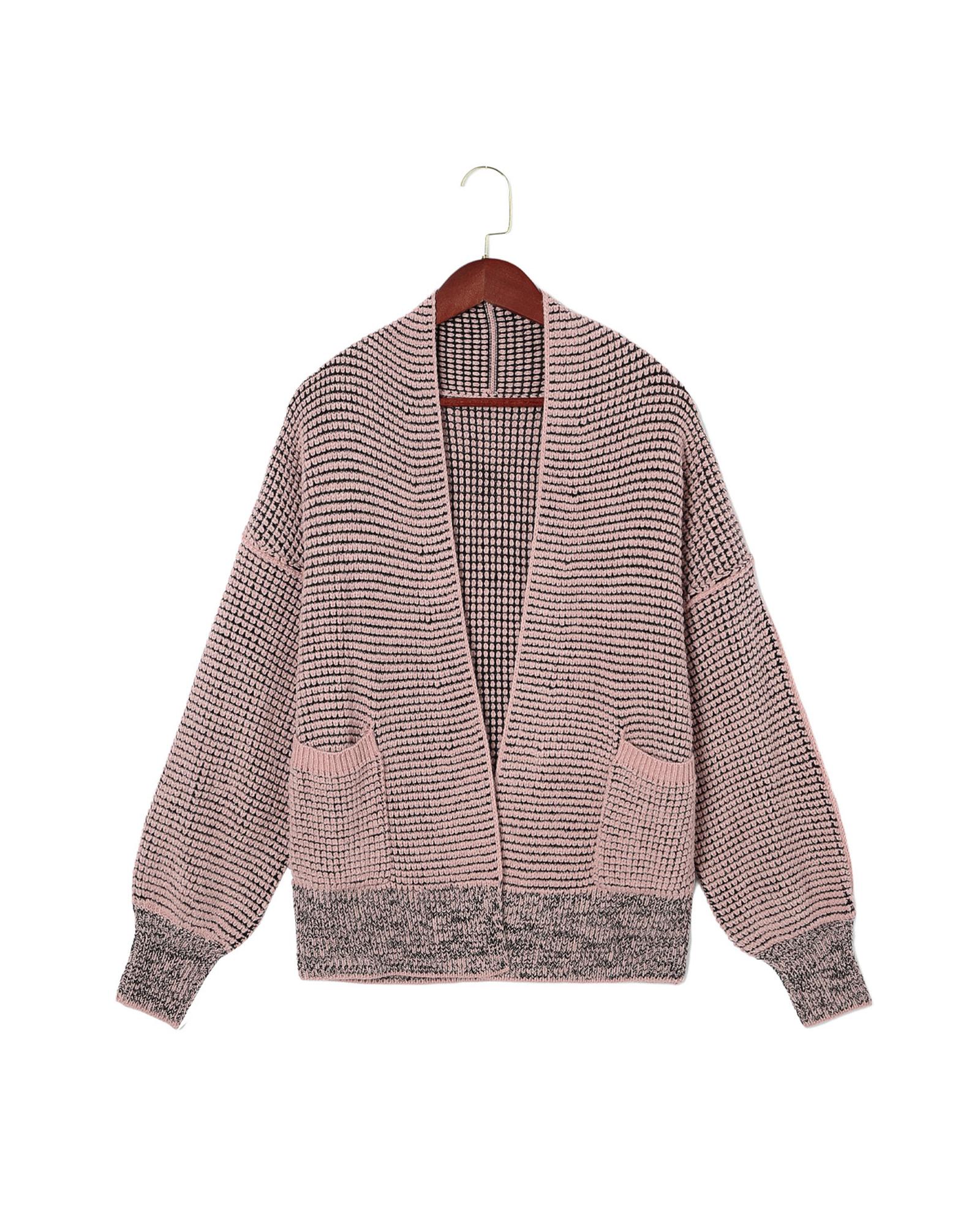Pink Confetti Drop Shoulder Open Front Cardigan - M