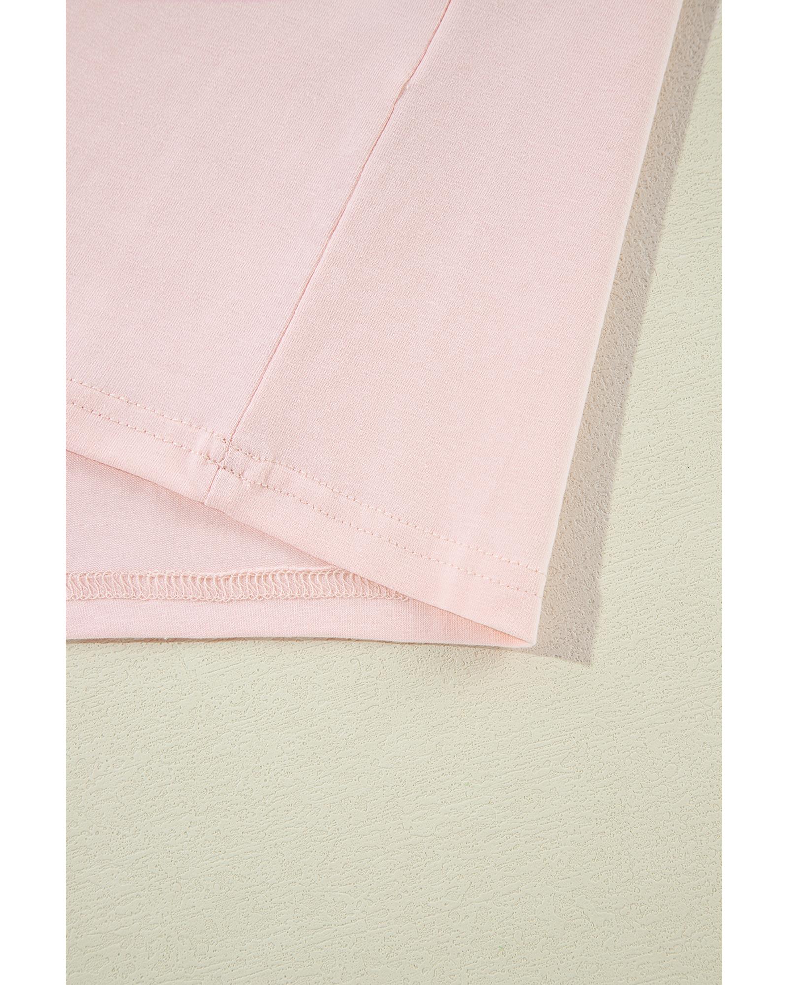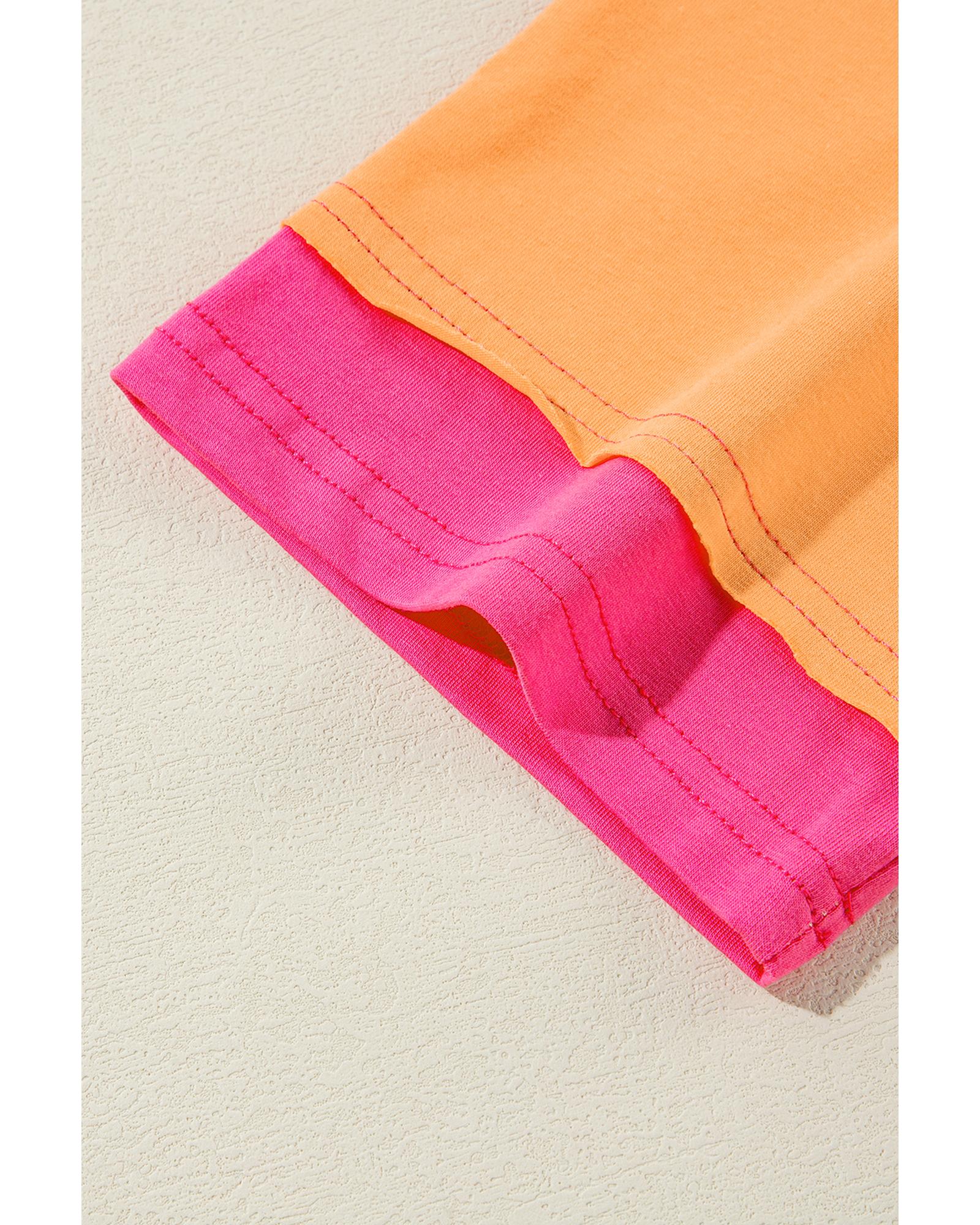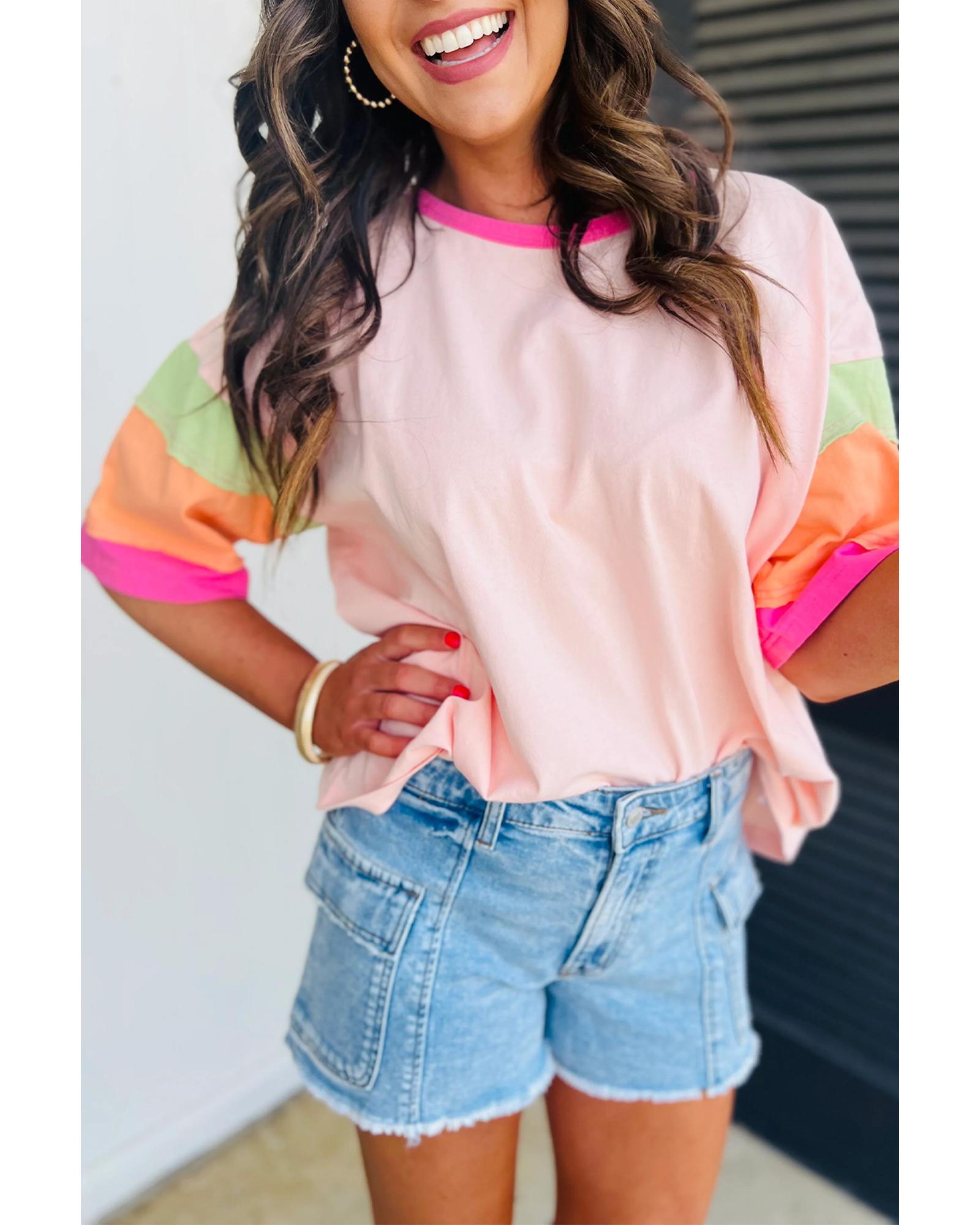 Pink Color Block Stitching Sleeve Round Neck Oversize Top – S