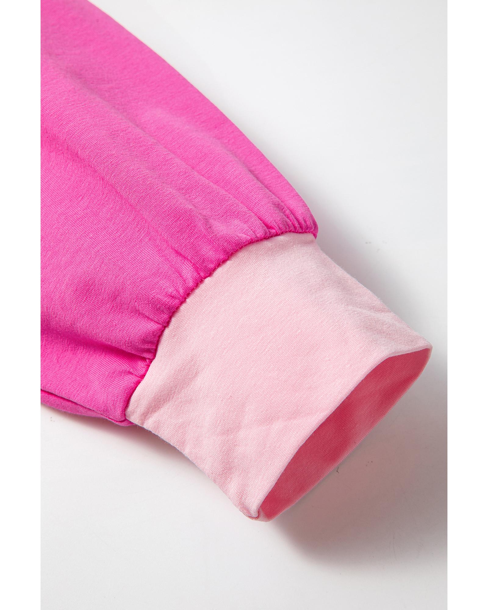 Pink Colorblock Patchwork Long Sleeve Plus Size Top – 3X