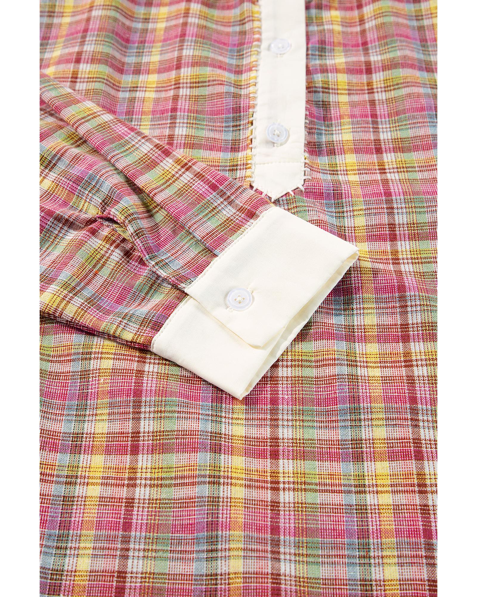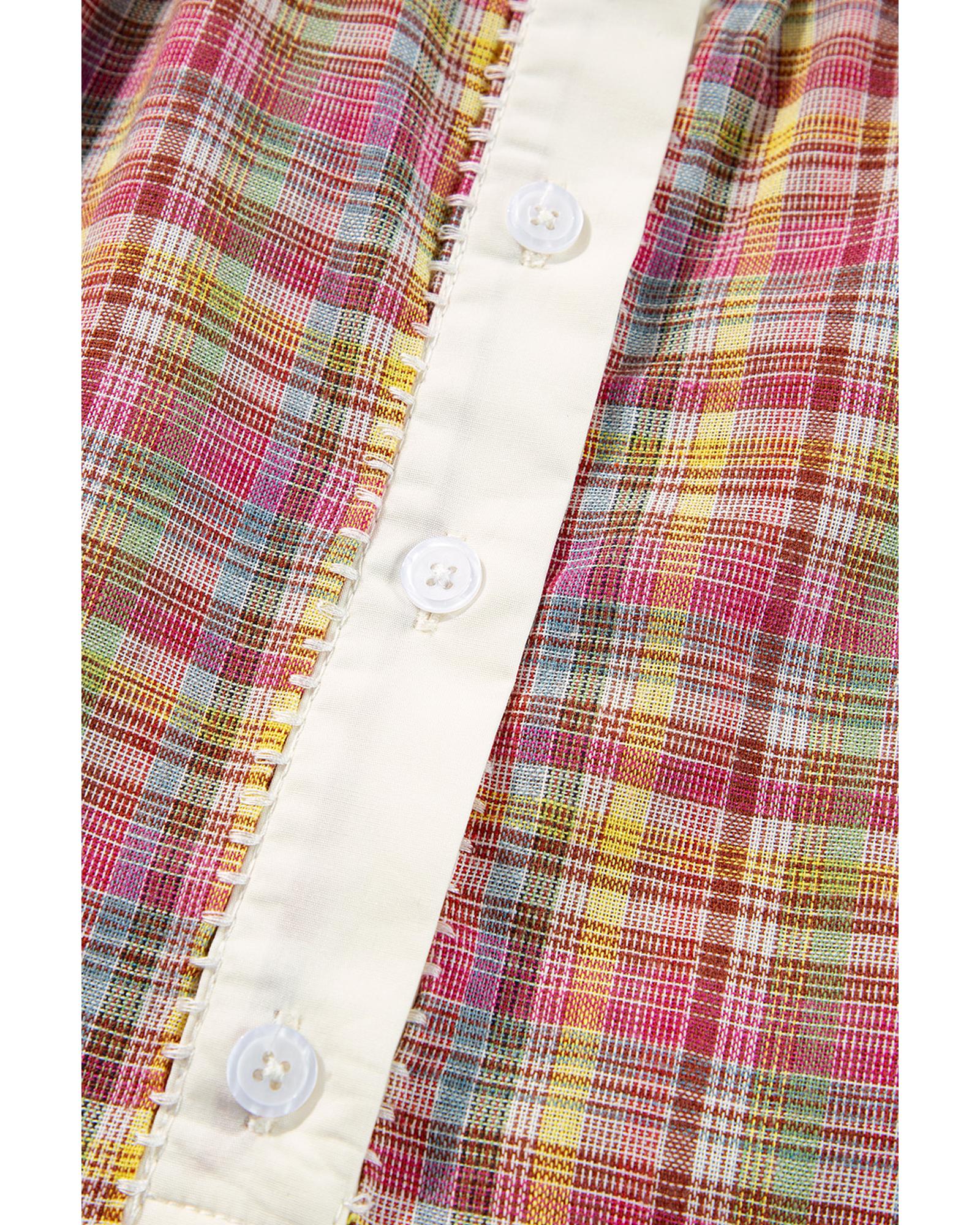 Pink Colorblock Plaid Patchwork Henley Blouse – XL