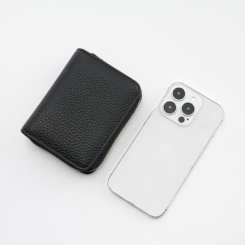 - Secure Zipper Closure: Features a smooth, reliable zipper closure for the main coin/change compartment, keeping your coins and valuables secure. A snap closure secures the card section.