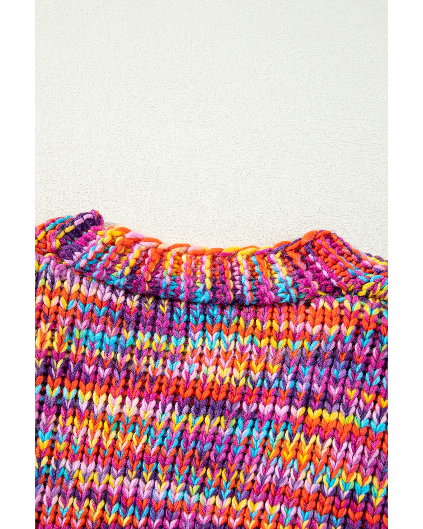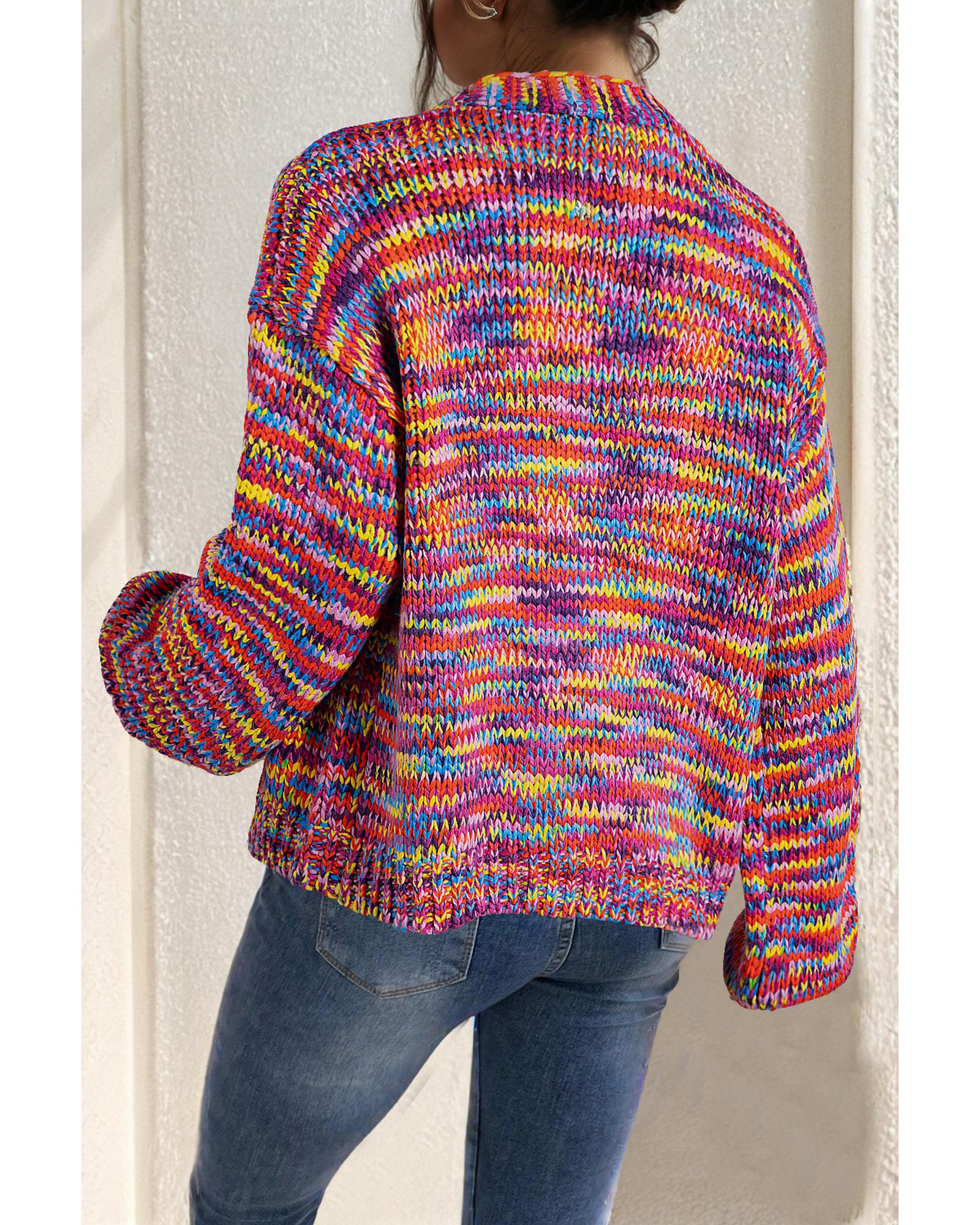 Pink Confetti Drop Shoulder Open Front Cardigan – M