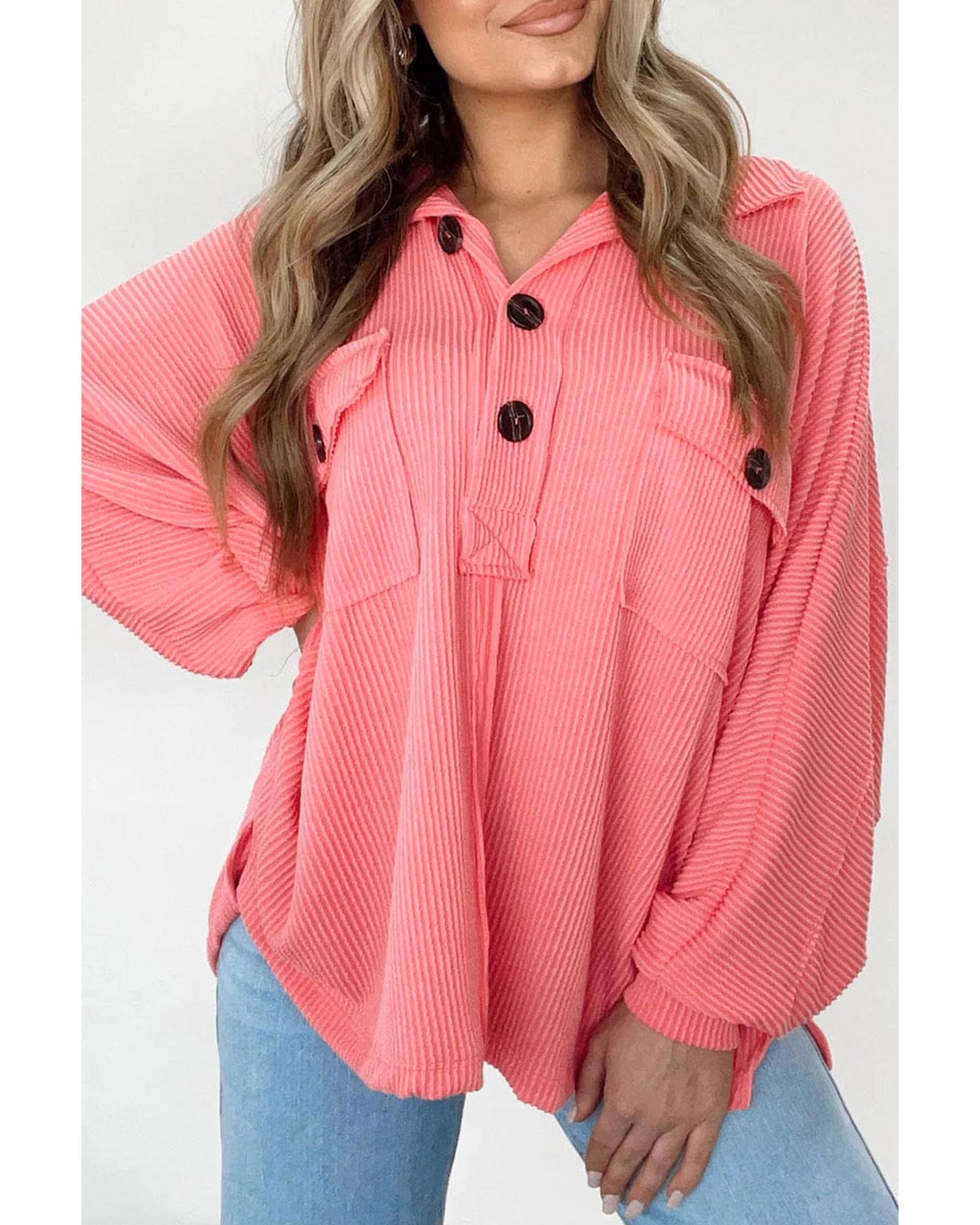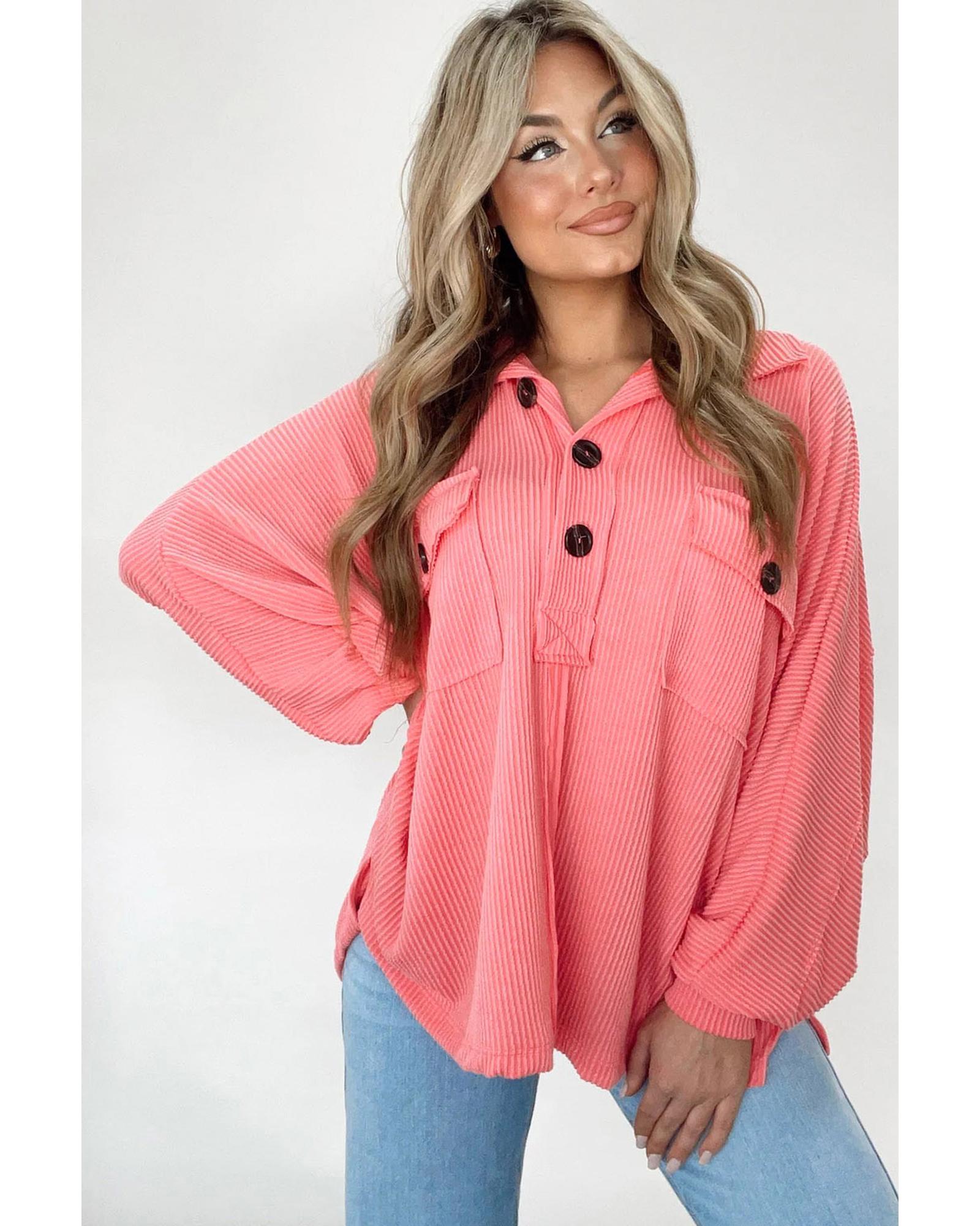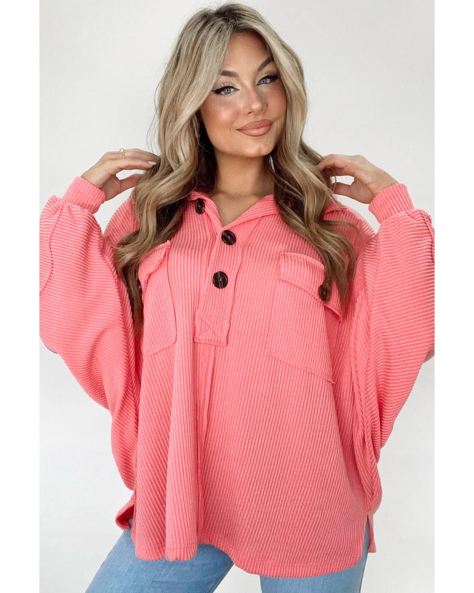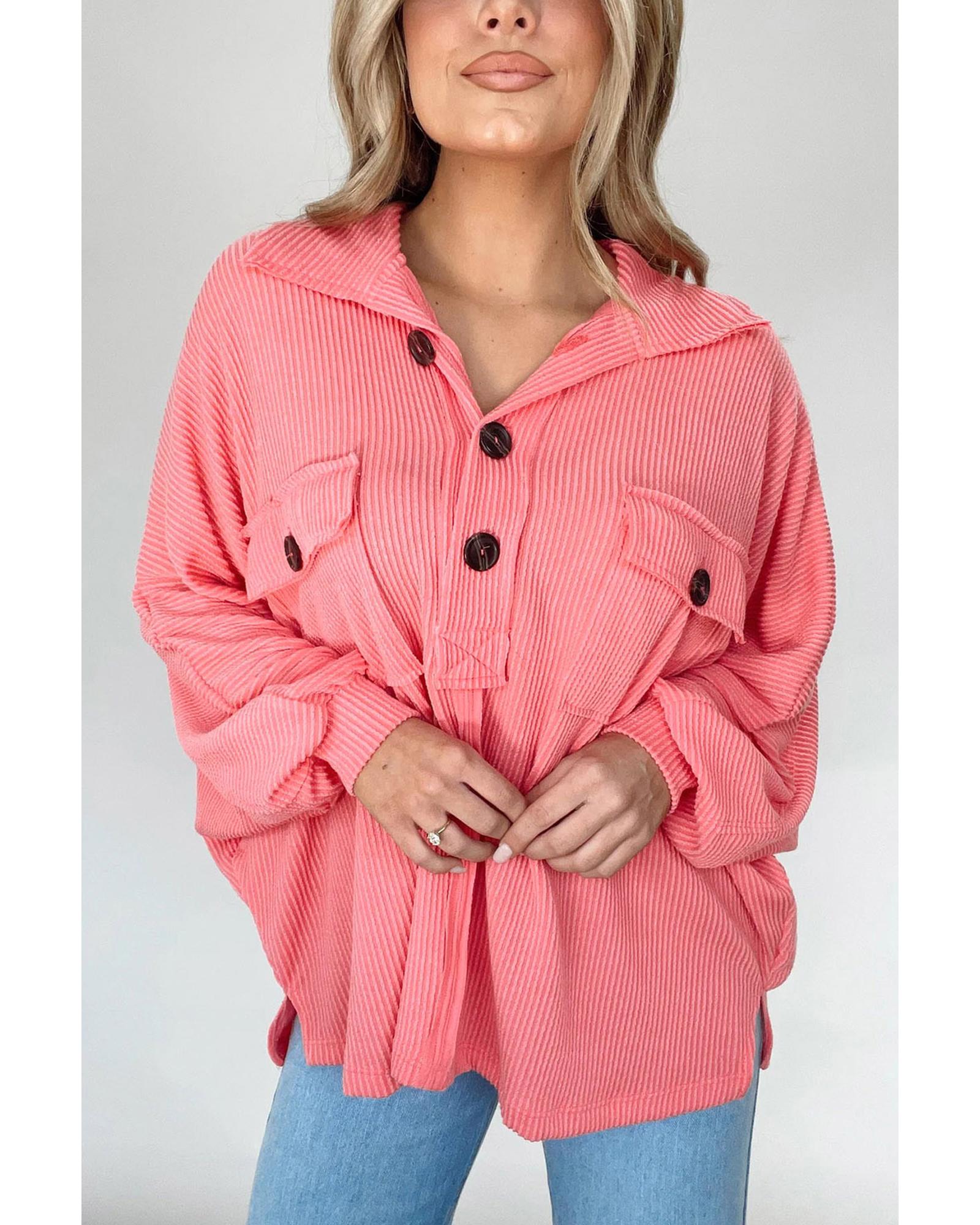 Pink Corded Flap Pocket Henley Top – M