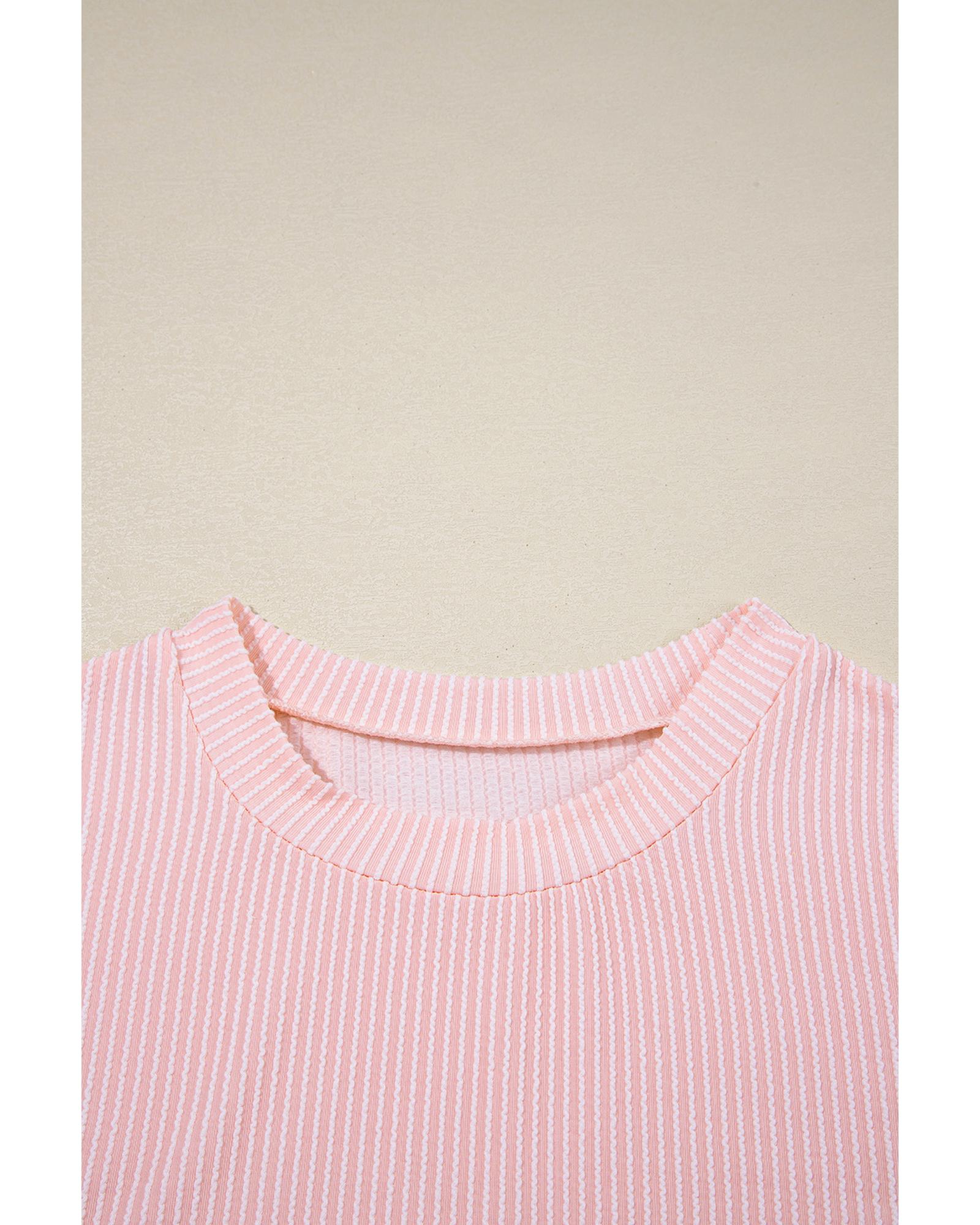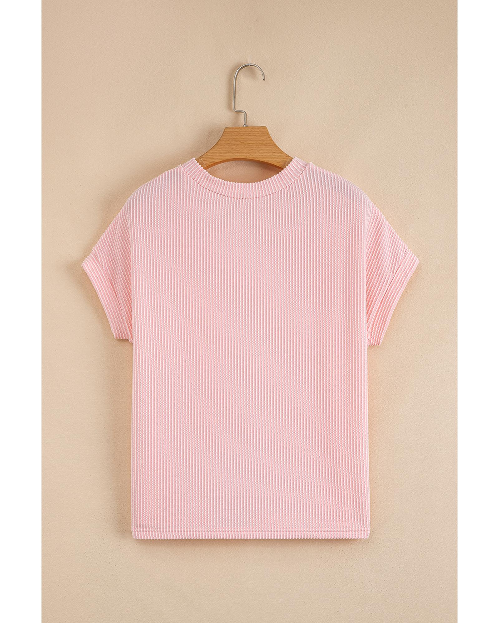 Pink Corded Knit Color Block Pocketed Crew Neck T Shirt – M