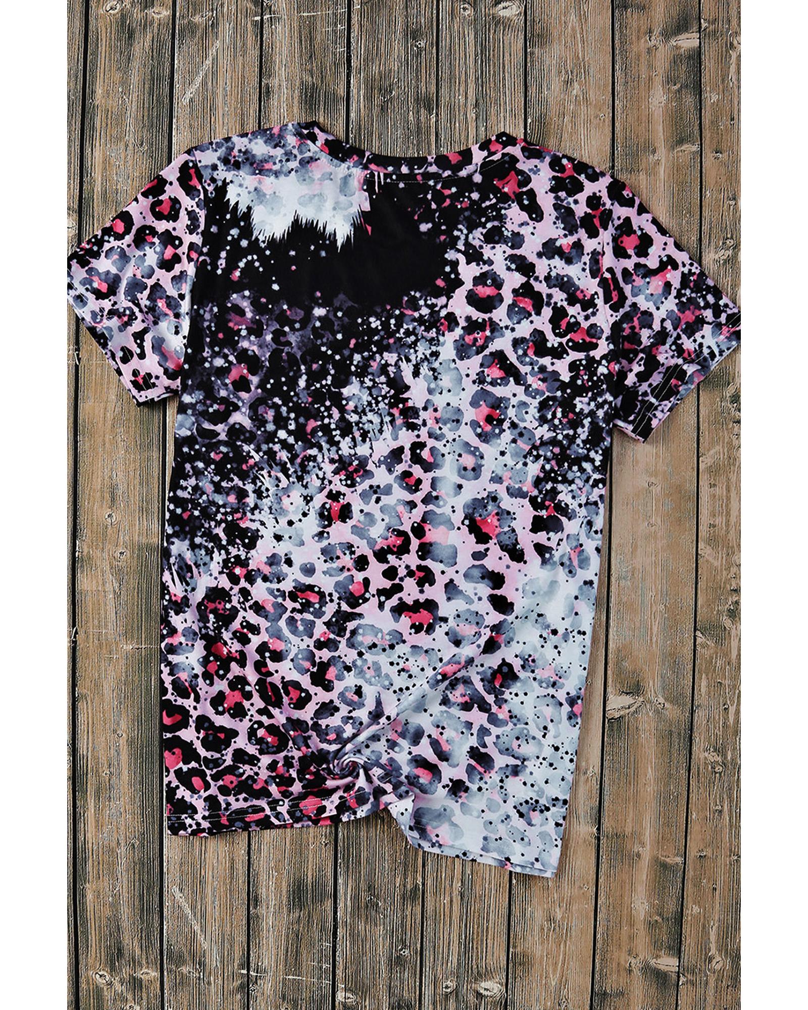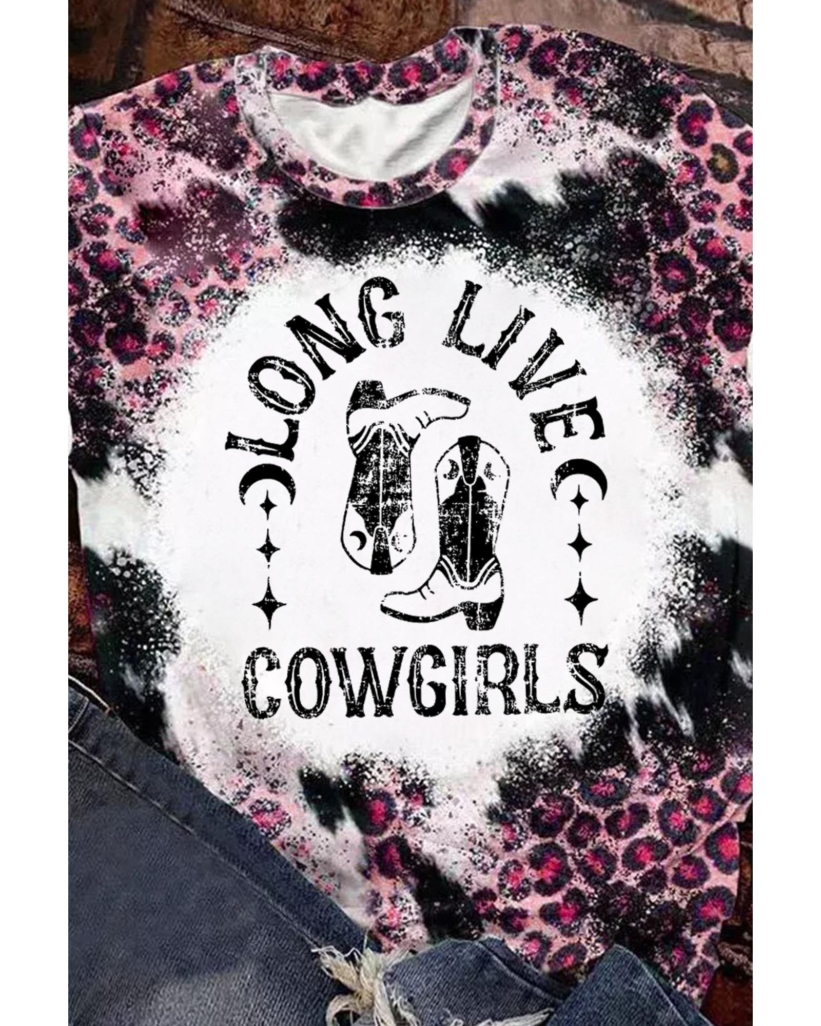Pink Cowgirls Boots Leopard Bleached Crew Neck T Shirt – XL