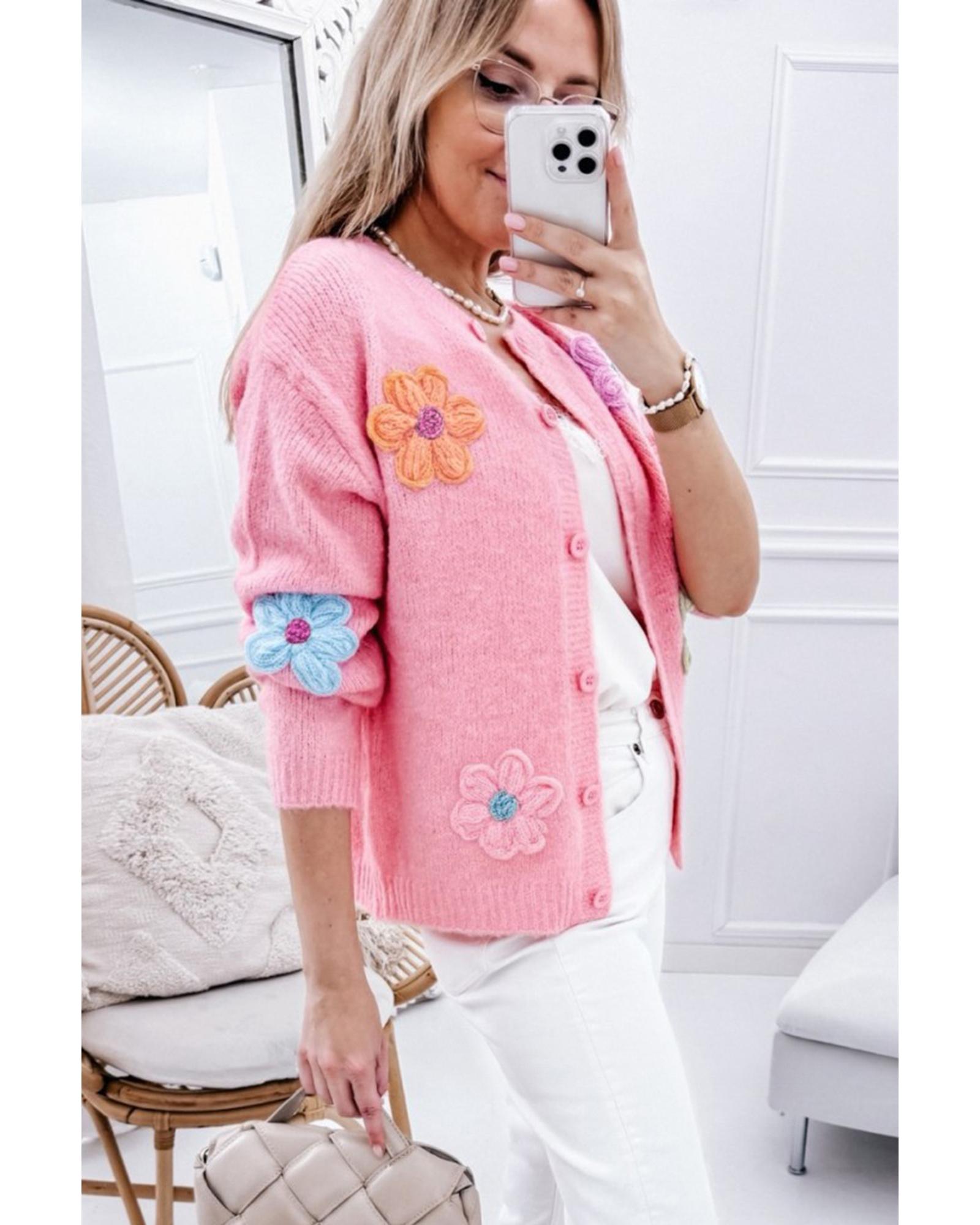 Pink Cute Knitted Floral Pattern Button Up Cardigan – XL