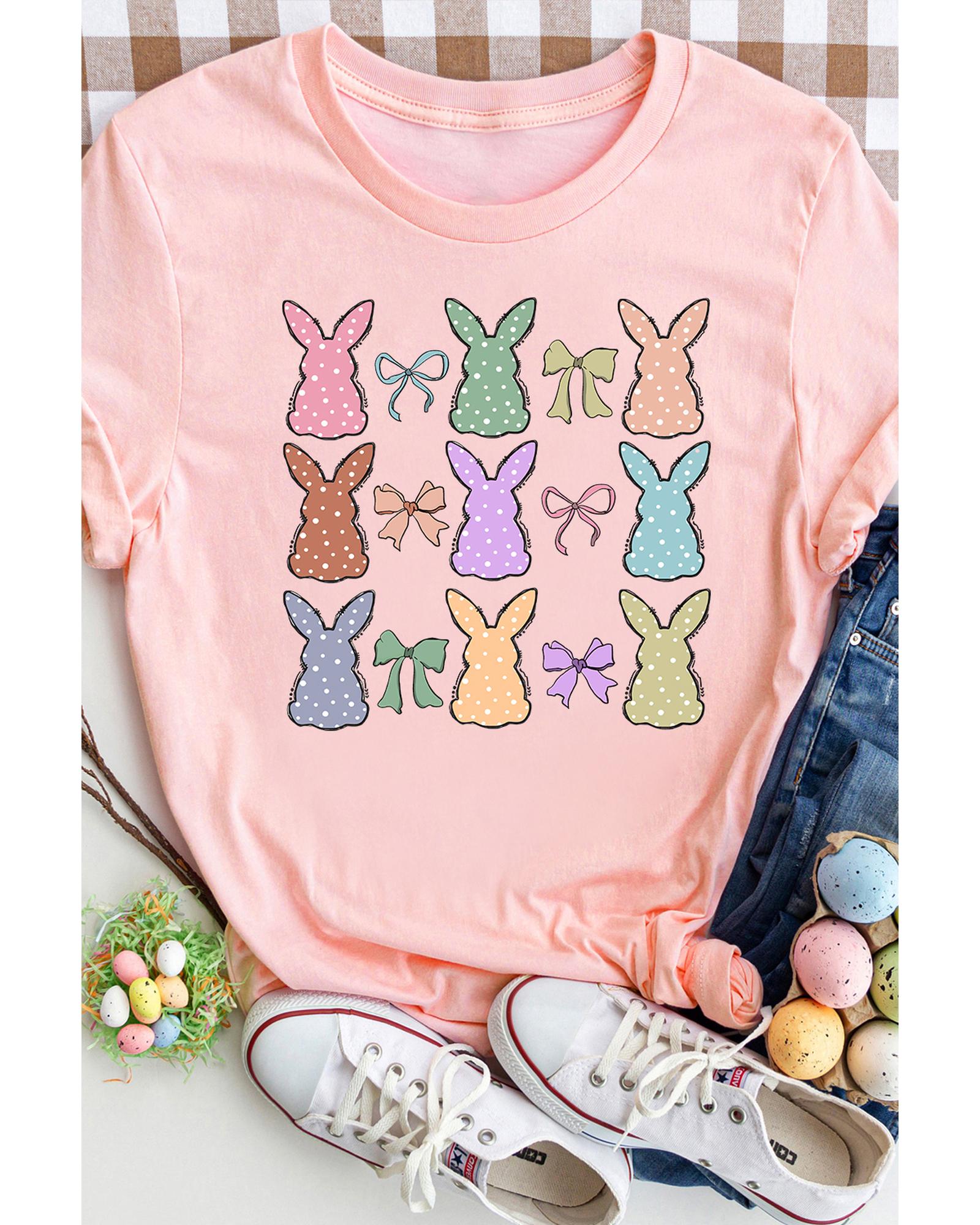 Pink Dotty Bunny Bow Printed Easter Day Fashion T Shirt – S