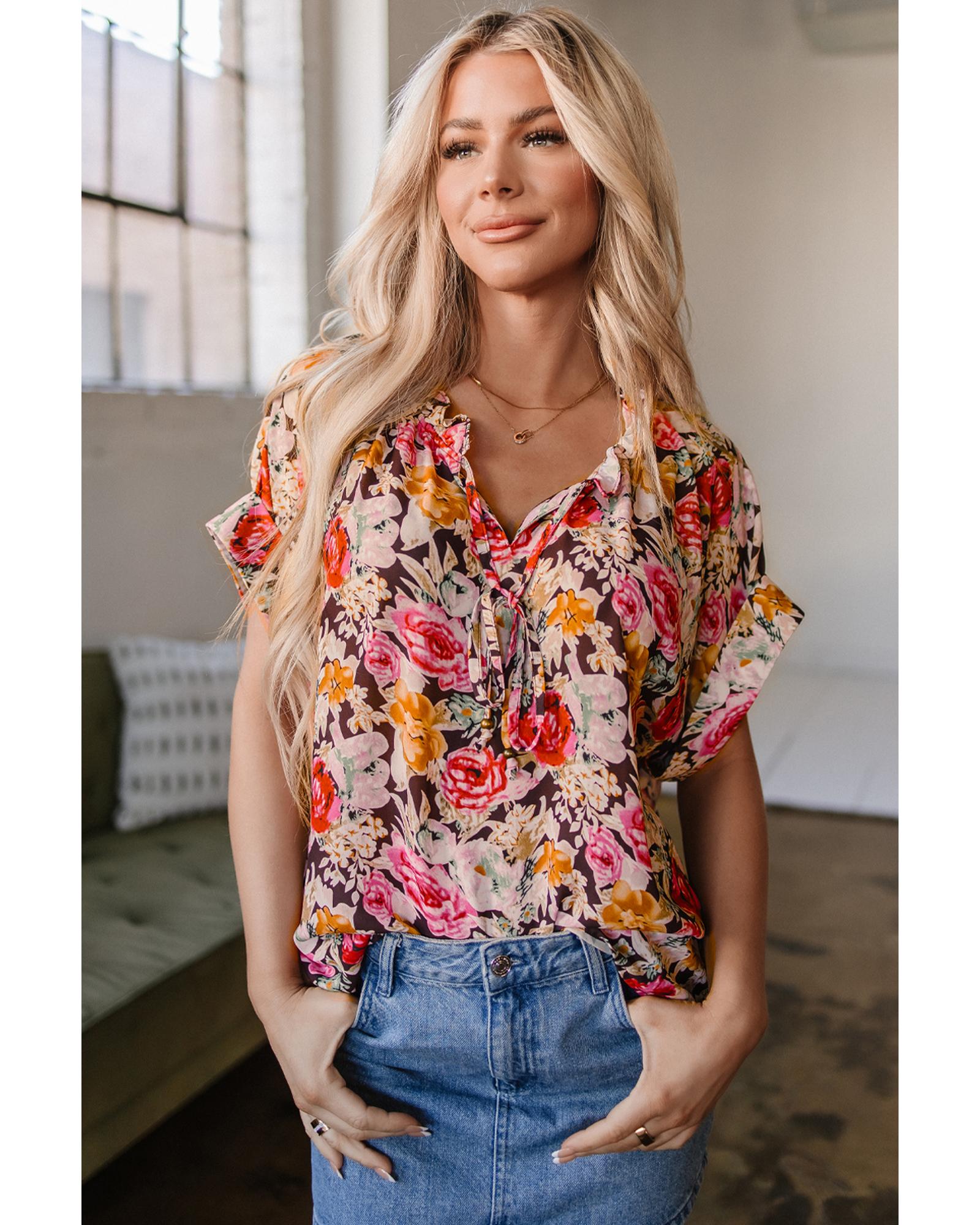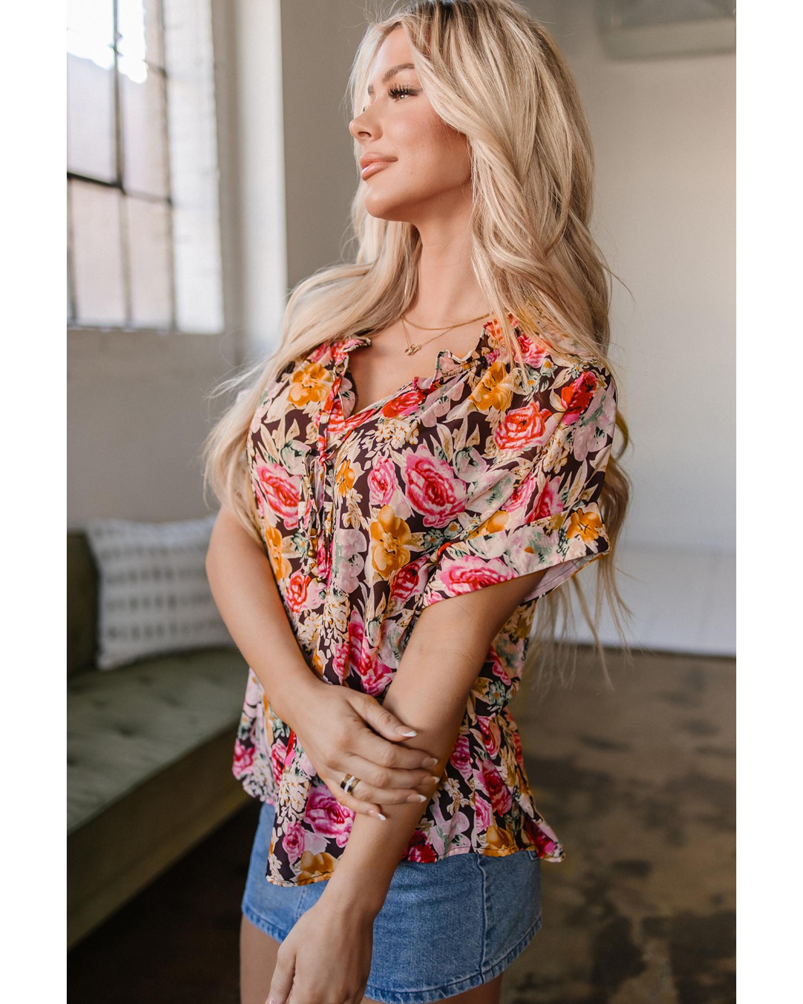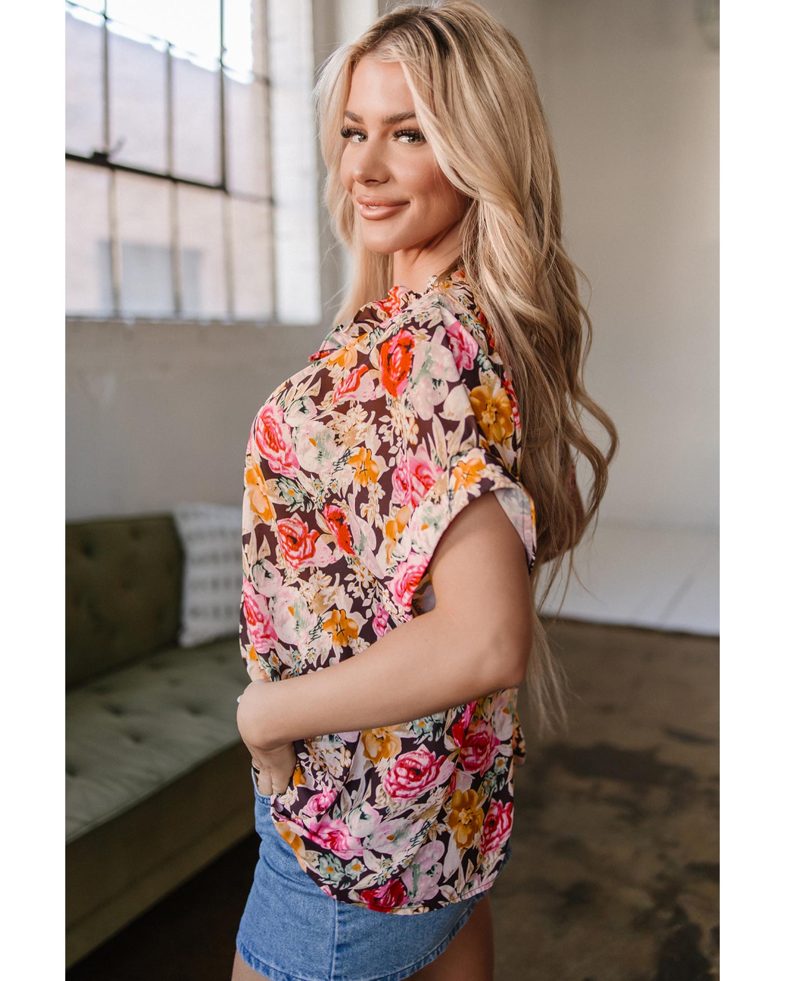 Pink Floral Print Crew Neck Short Sleeve Shift Blouse – S
